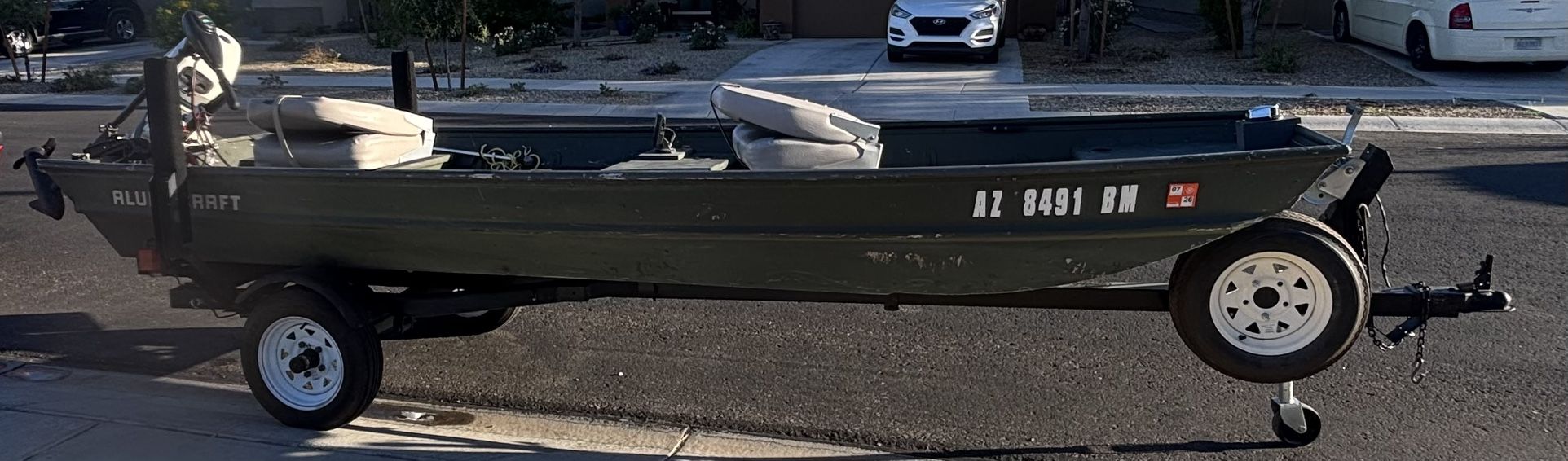 14’ Jon Boat with trailer, 6hp Johnson outboard motor, trolling motor, fish finder, live well, and more modifications/items. Price is OBO. All paperwork is current and valid. Any questions feel free to reach out.
