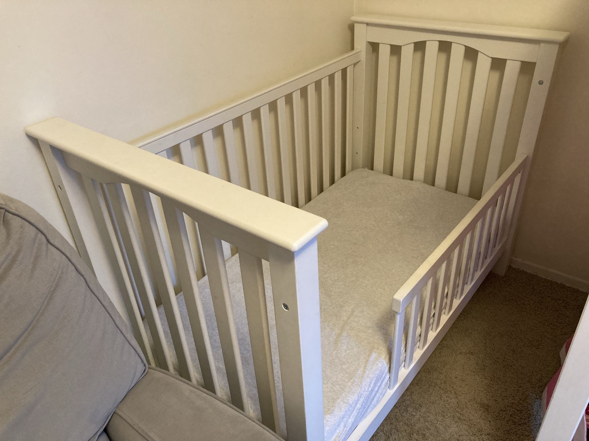 This crib/ toddler bed goes for $650 new. It is in excellent condition. Its official name is the Kendall Convertible Crib.