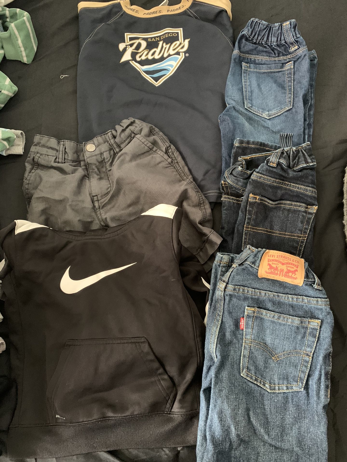 No tears or anything Brands include ; Nike , Levi’s , Oshkosh , Padres , old navy , Micros Sizes 4-5 and Levi’s is size 7