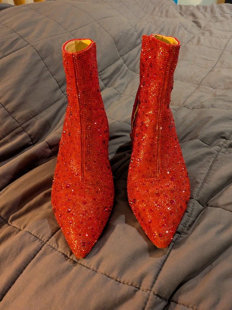 Size 10. Snug. I wear a 10 and they fit but are very tight. Probably closer to an actual 9 1/2. In great condition. Ready to make your sparkly boots or Dorothy dreams come true.