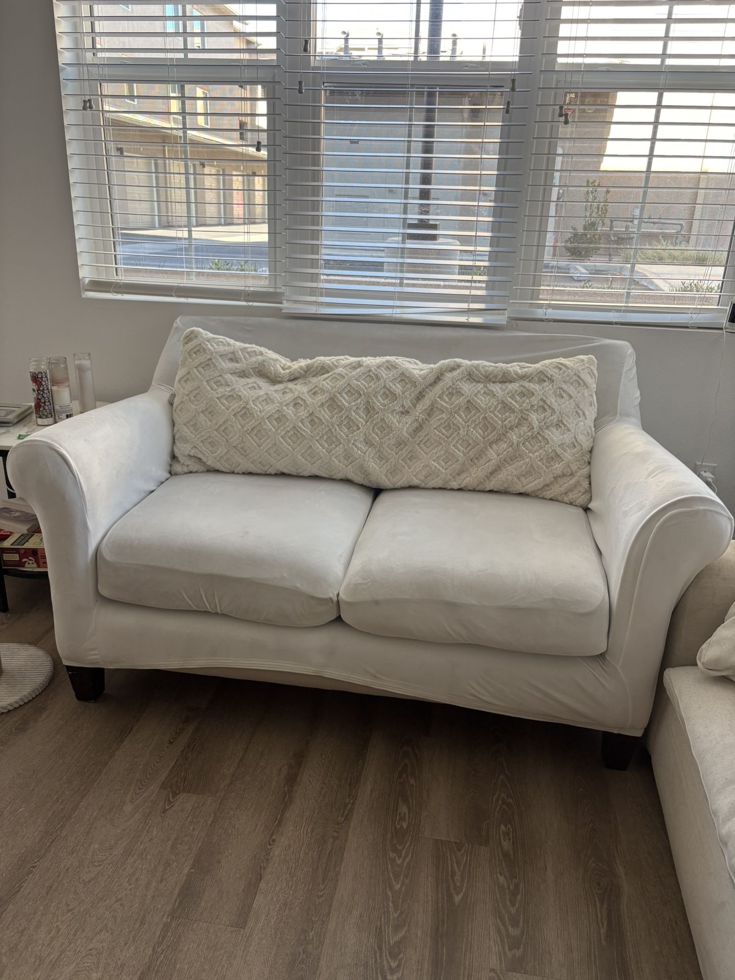 Love seat couch in great condition. Original color is beige but I currently have a cover on it. You can take cover if you want. Pillow not included. No stains or scratches or rips.