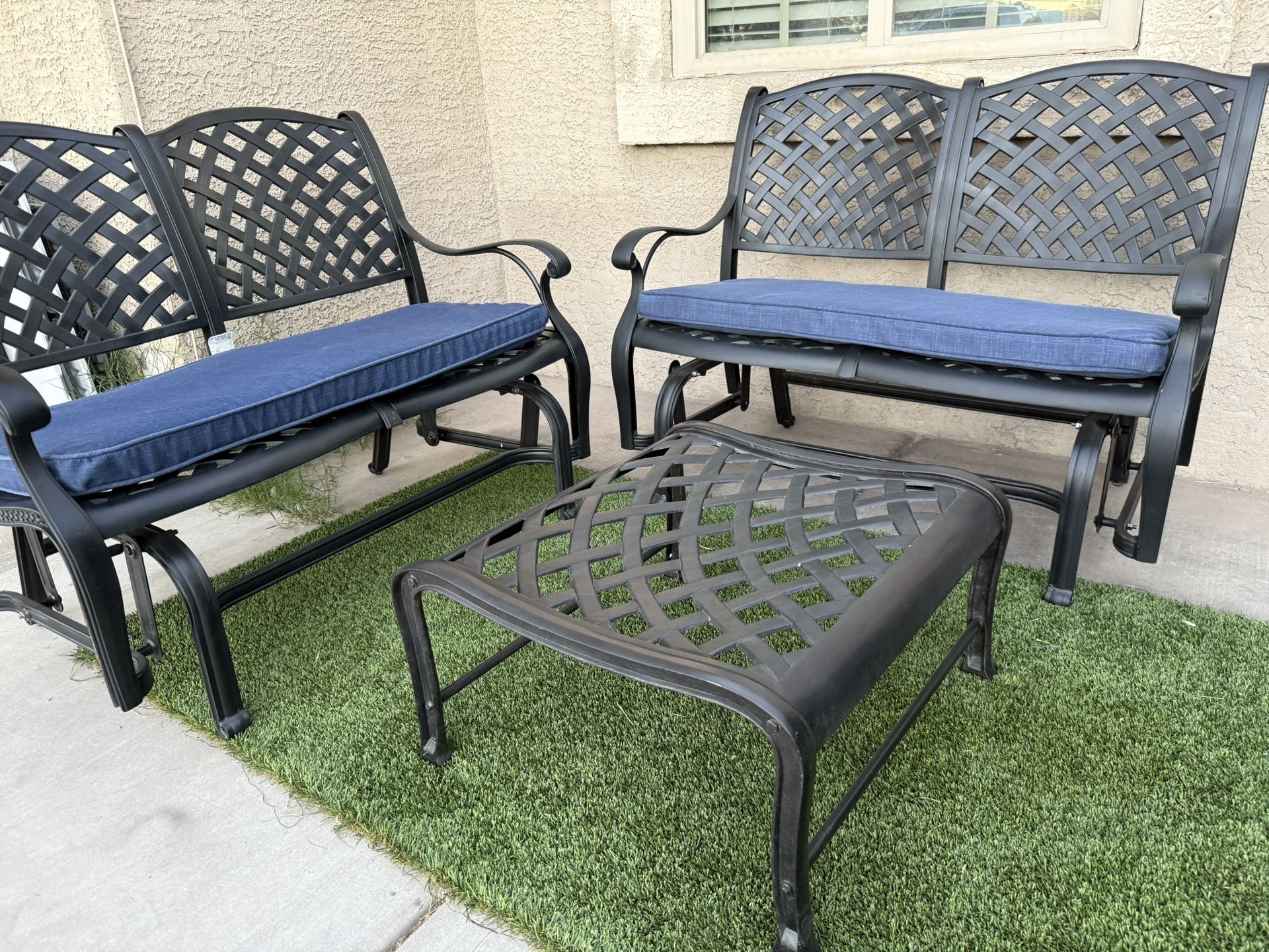 Patio Outdoor Furniture 2 Sabana Bench Glider- Loveseat With Cushions 1 Ottoman