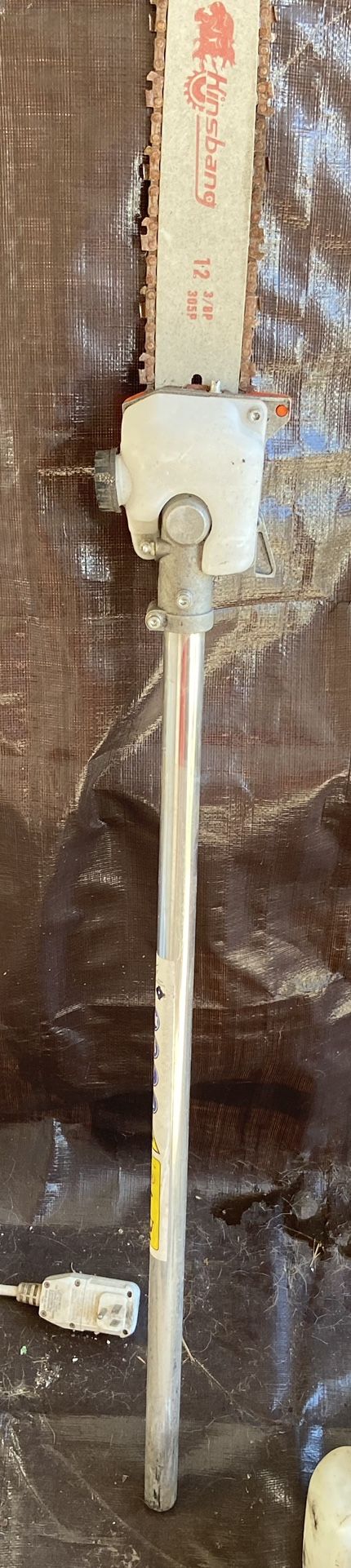 52 cc Brush cutter with pole saw attachment , pole extender , weedeater attachment , hedge trimmer attachment, needs a pull start and ignition coil. Both parts cost around $10 each.