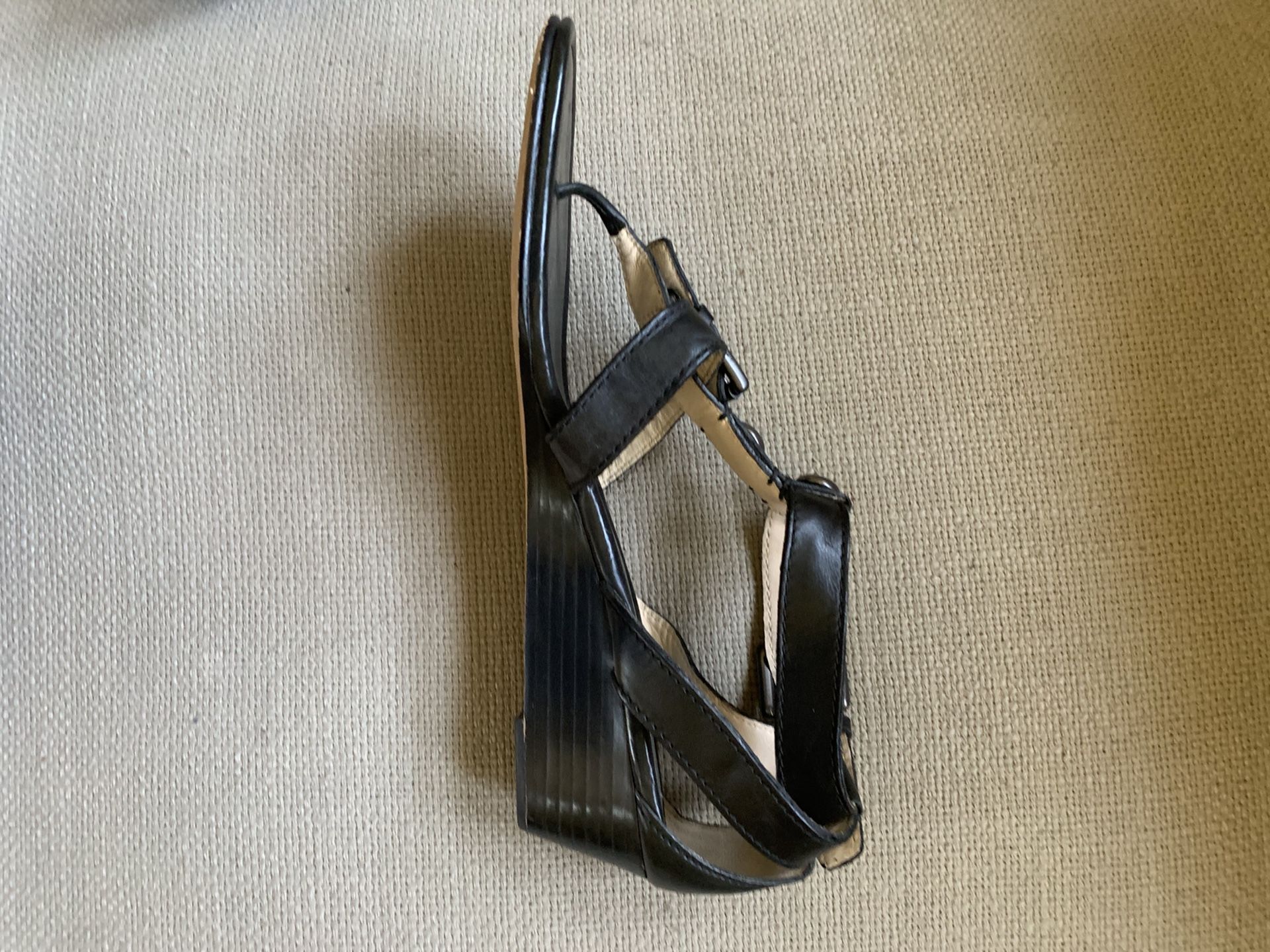 Great condition summer sandals. Small wedge leather Coach sandals. Black 8 1/2