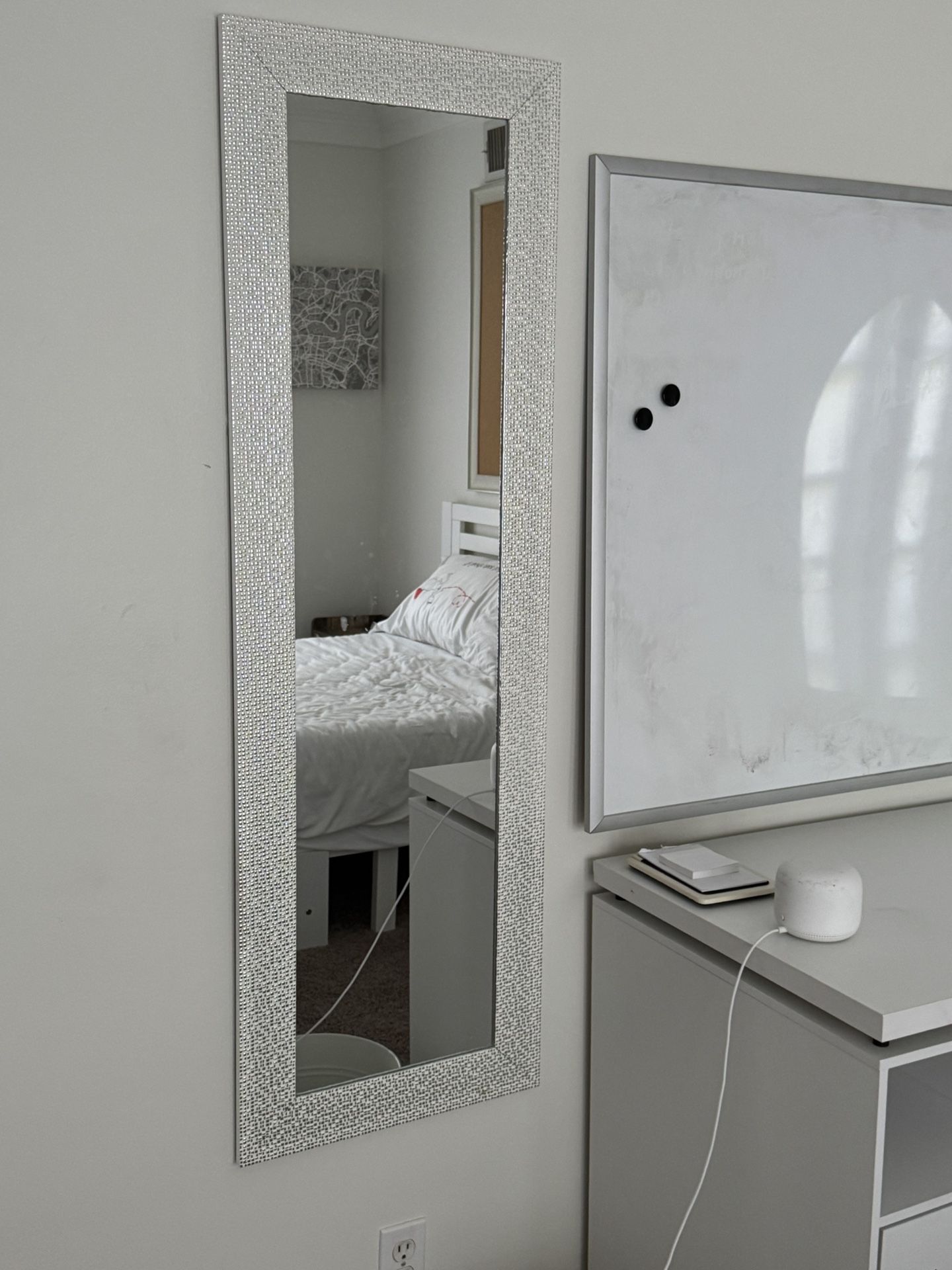 White And Silver Narrow Wall Mirror