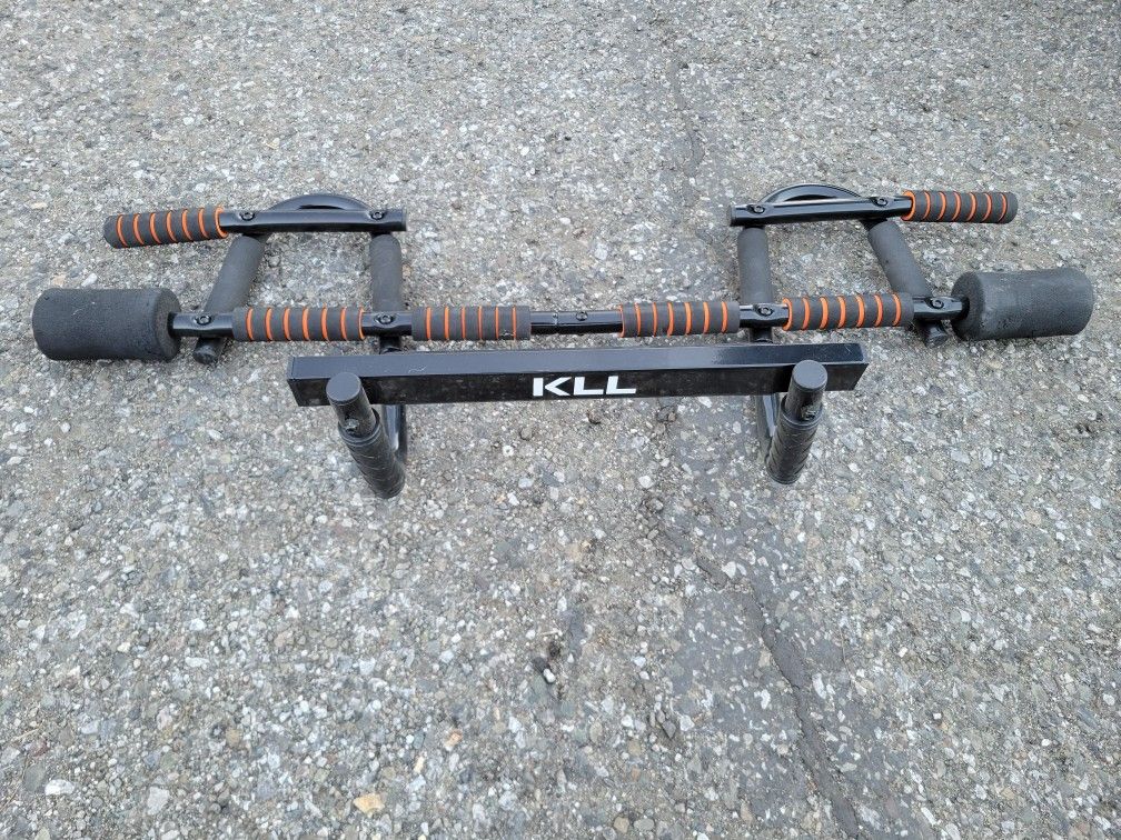 Door frame pull up bar. Attaches to any standard door frame with adequate space on each side. Cash only. Amazon price: $40