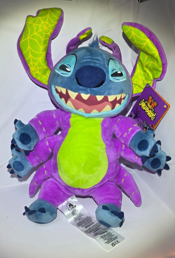 Disney Parks 2024 Happy Halloween Lilo & Stitch Spider Costume Plush Toy NWT. Get ready for a spooky celebration with this Disney Parks 2024 Happy Halloween Lilo & Stitch Spider Costume Plush Toy. This adorable plush toy features the beloved characters from the Disney movie, Lilo & Stitch, dressed up in a spider costume for Halloween. The plush toy is perfect for any Disney fan, young or old, and is sure to bring a smile to everyone's face.With its high-quality construction and attention to detail, this plush toy is a must-have for any Disney collector or fan. Whether you're adding it to your collection or giving it as a gift, this plush toy is sure to bring joy and cheer to any occasion. Don't miss out on the chance to own this delightful piece of Disneyana history. This is the actual item you will receive. He is absolutely adorable. Design: Features Stitch in his alien form with four arms, purple and green colors, felt claws, and soft floppy ears with a cobweb print. Theme: Halloween-themed plush, inspired by Disney's Lilo & Stitch (2002). Material: Made of polyester. Size: Approximately 40cm (15.7 inches) in height. Collection: Part of the Stitch Halloween Collection.