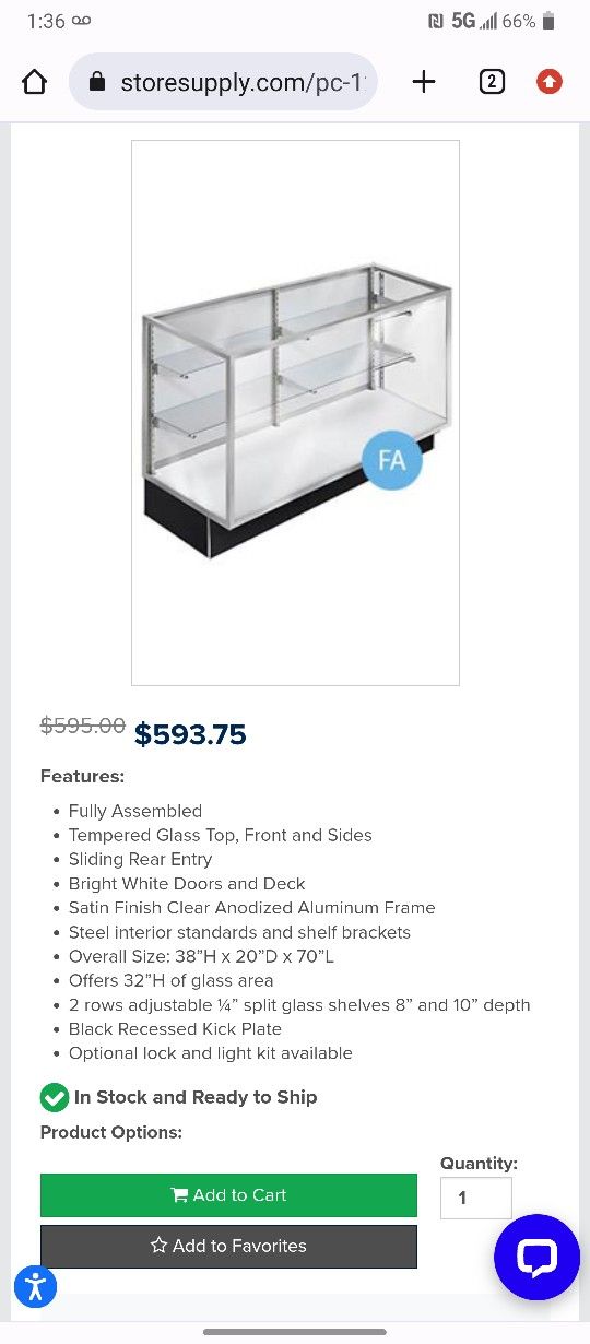 Glass display case different sizes.
