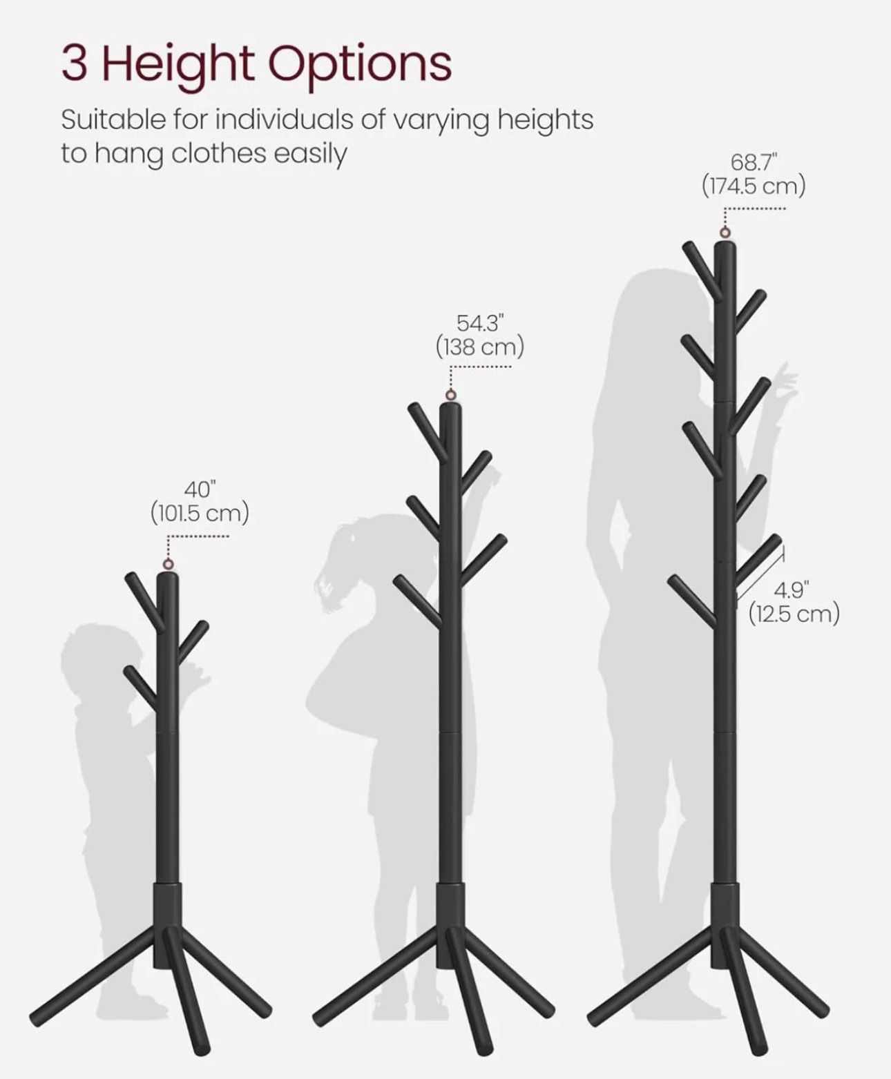 VASAGLE Solid Wood Free Standing Tree-Shaped Coat Rack w/ 8 Hooks - Black