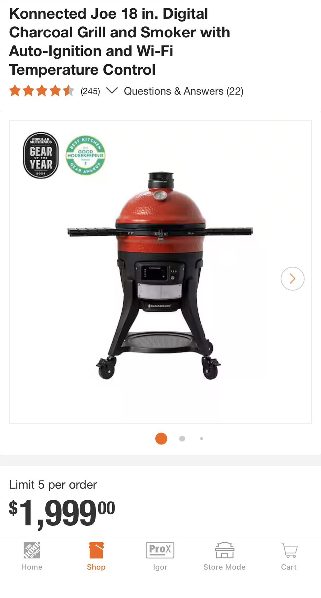 Konnected Joe 18 in. Digital Charcoal Grill and Smoker with Auto-Ignition and Wi-Fi Temperature Control