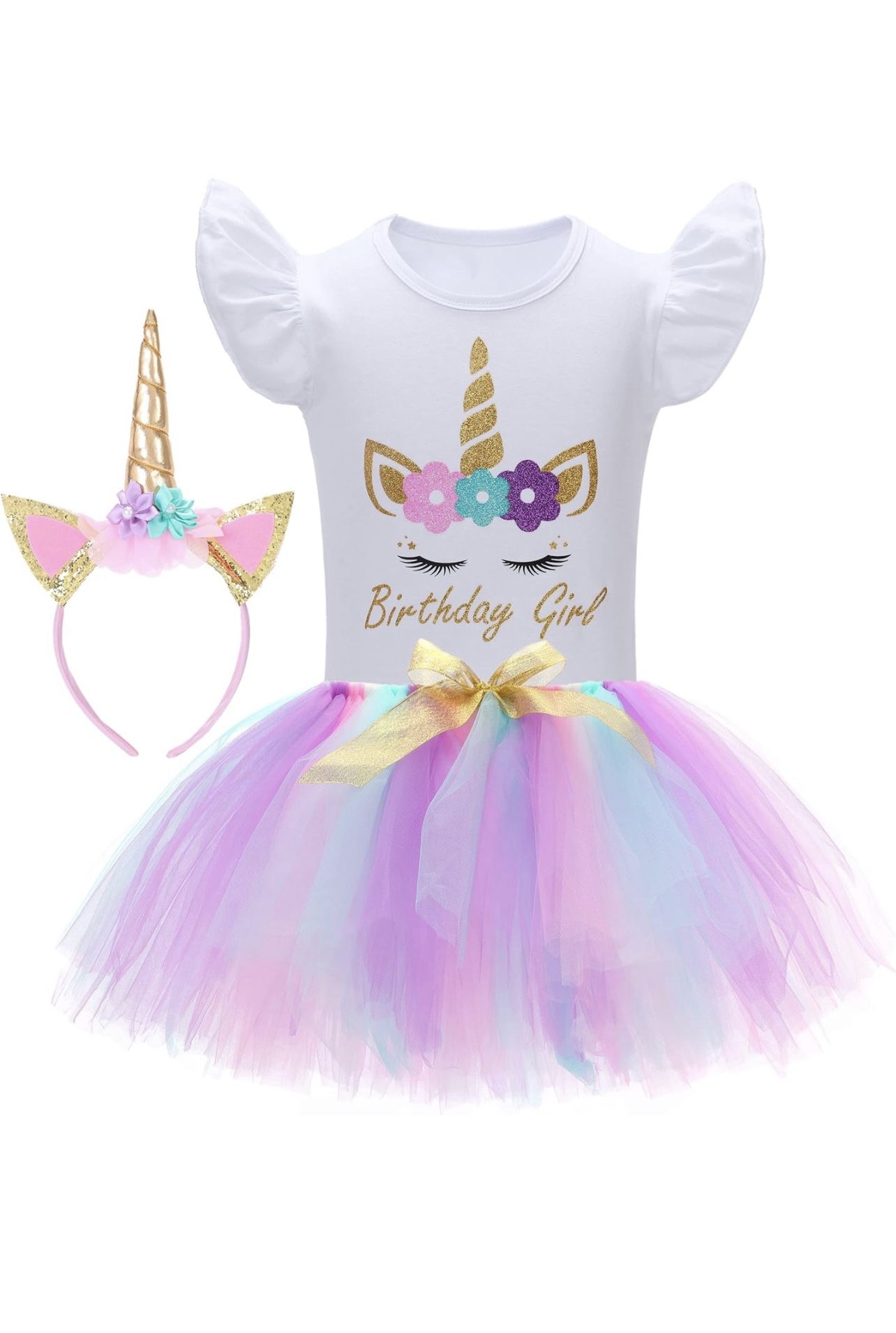 new 9-10y Unicorn Birthday Outfit for Girl Unicorn Tutu Dress Birthday Girl Shirt with Headband
