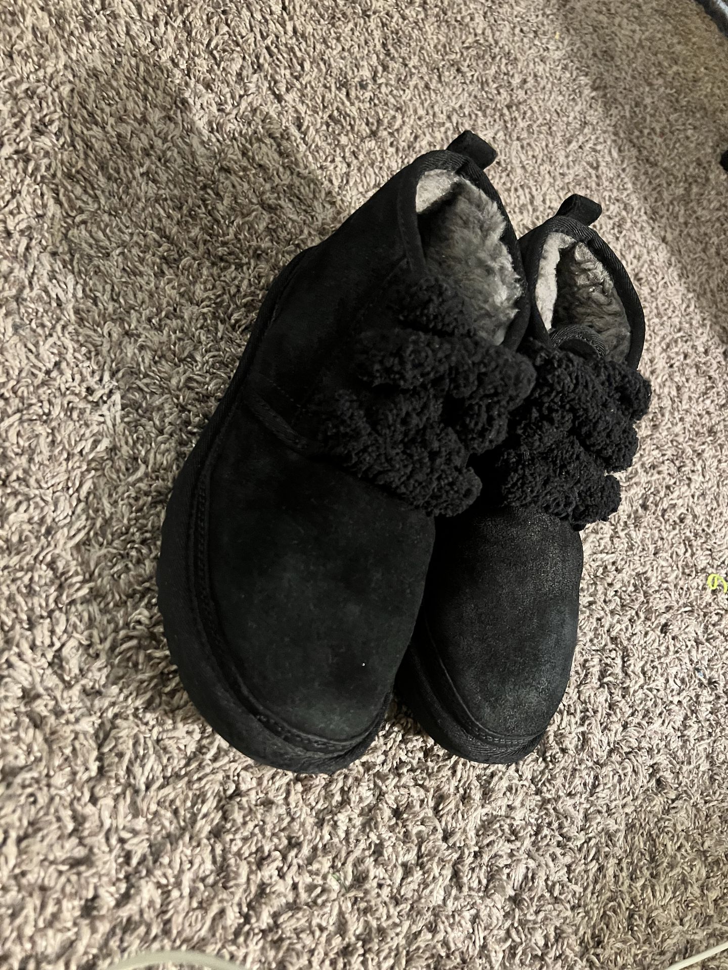 Black UGG slippers with fur laces size 8Womens