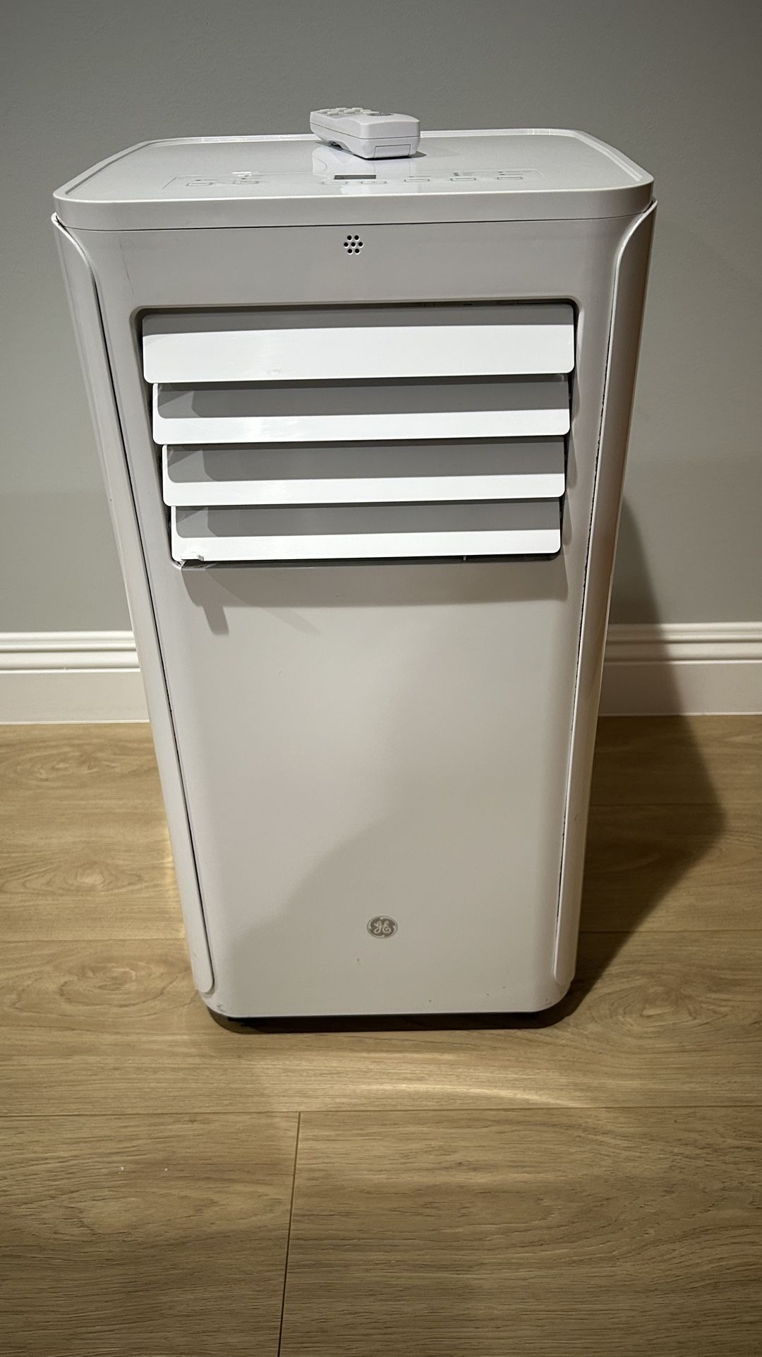 GE 6100 BTU Portable Air Conditioner, digital controls, remote control, includes easy install window kit. Blows out super cold air.