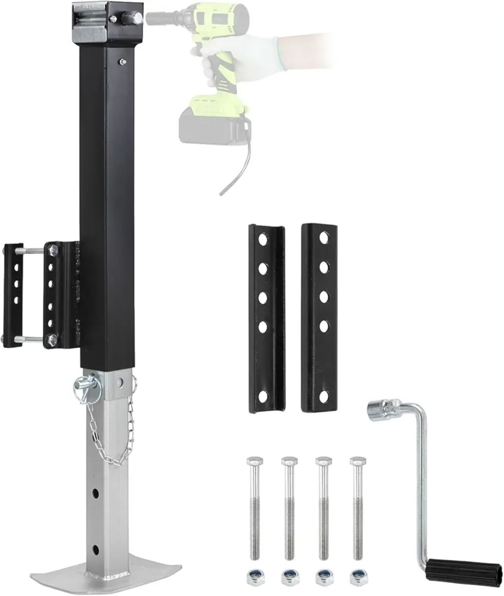 Black Heavy Duty Trailer Jack 8000 lbs Capacity Adjustable Height 3.1"-31.5", Side-Mount with Ergonomic Crank Handle for Utility, Boat & Yacht Trailer
