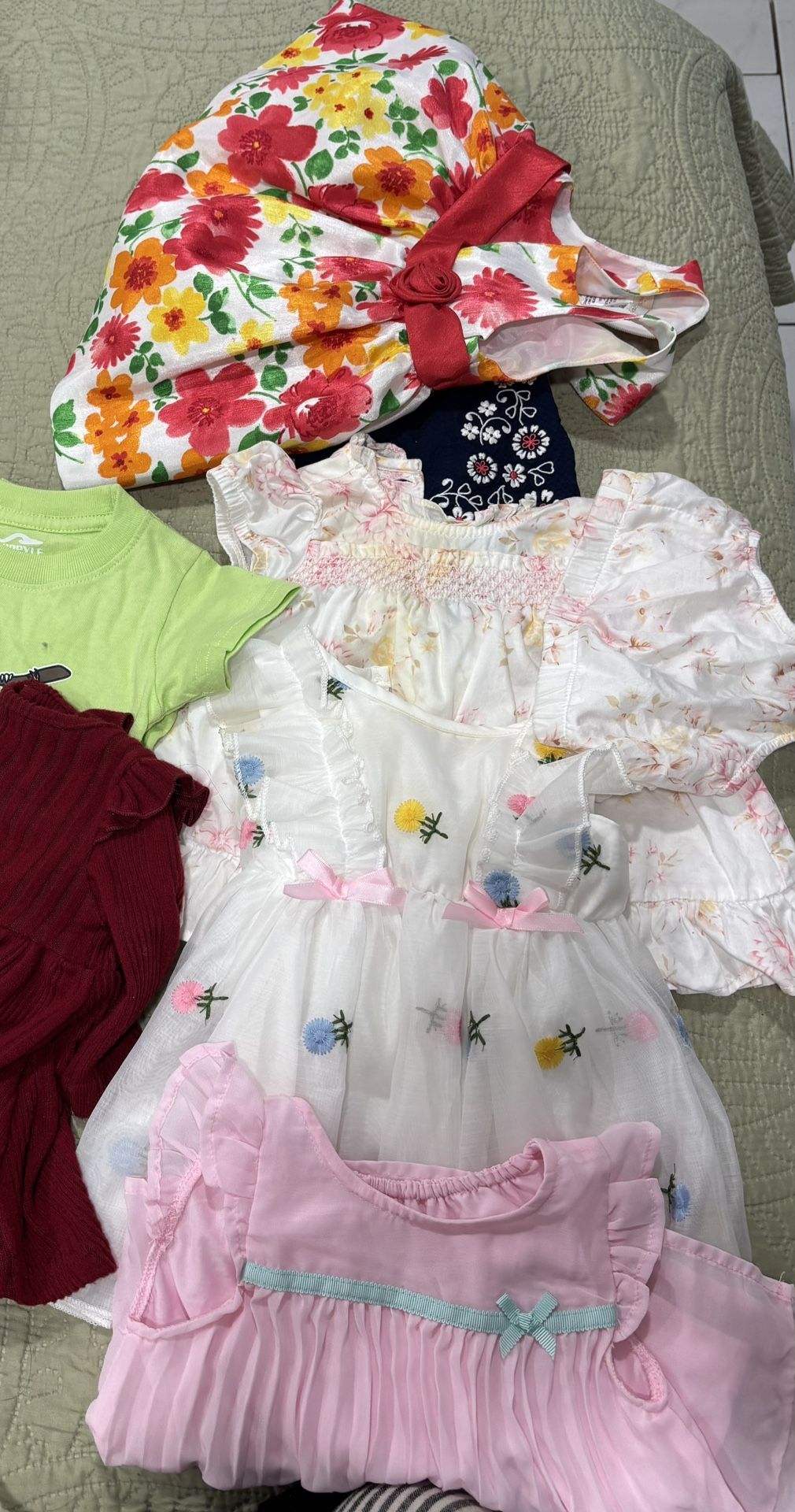 6 baby girl dresses one onesie Size 1-3 month and 6 months.