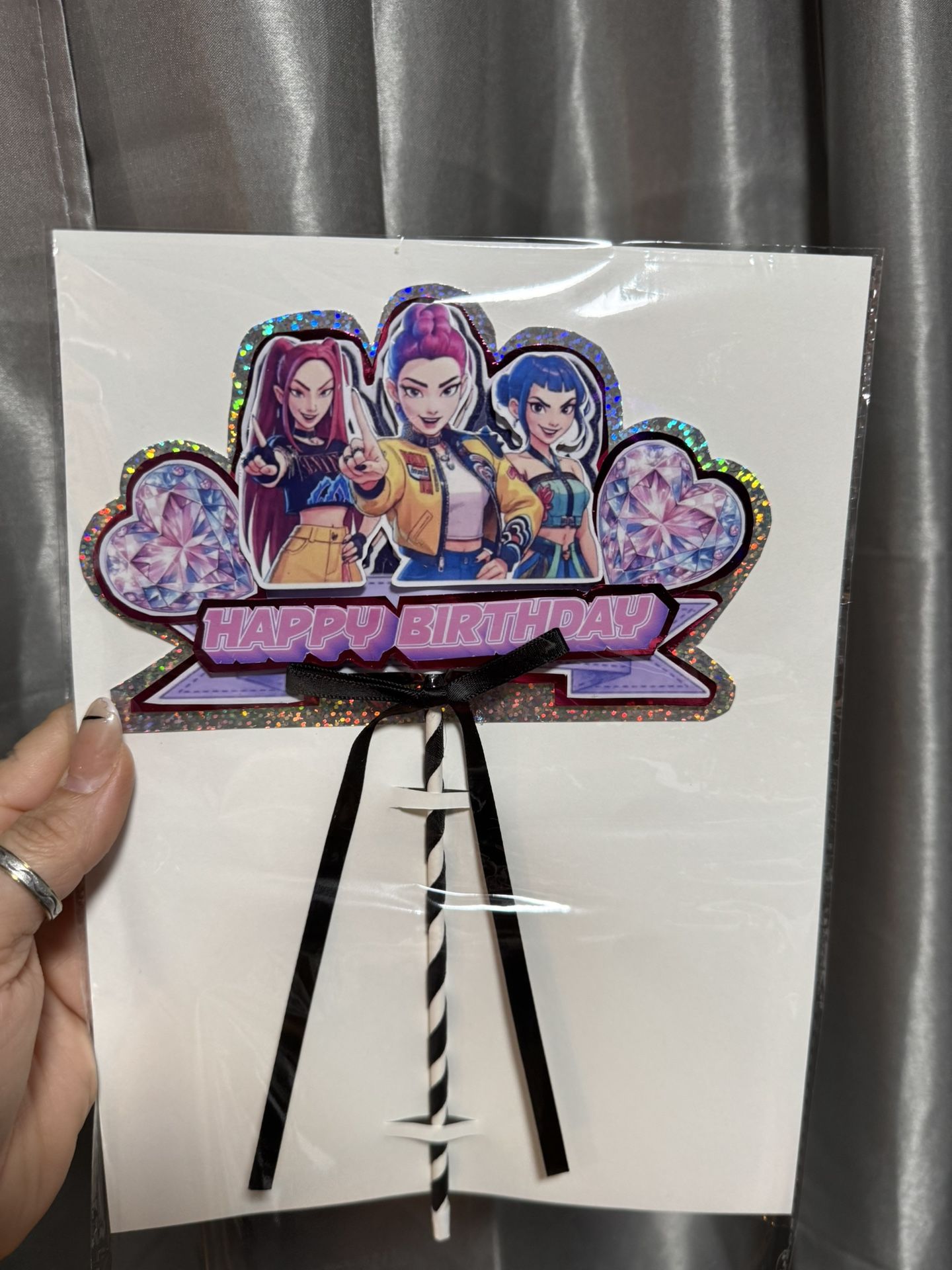 Kpop d hunters birthday party box Complete party box all hand made includes 1 cake topper 10 cupcake toppers 6 decorated boxes 6 invitation of your choice ( 4 samples to chose from)