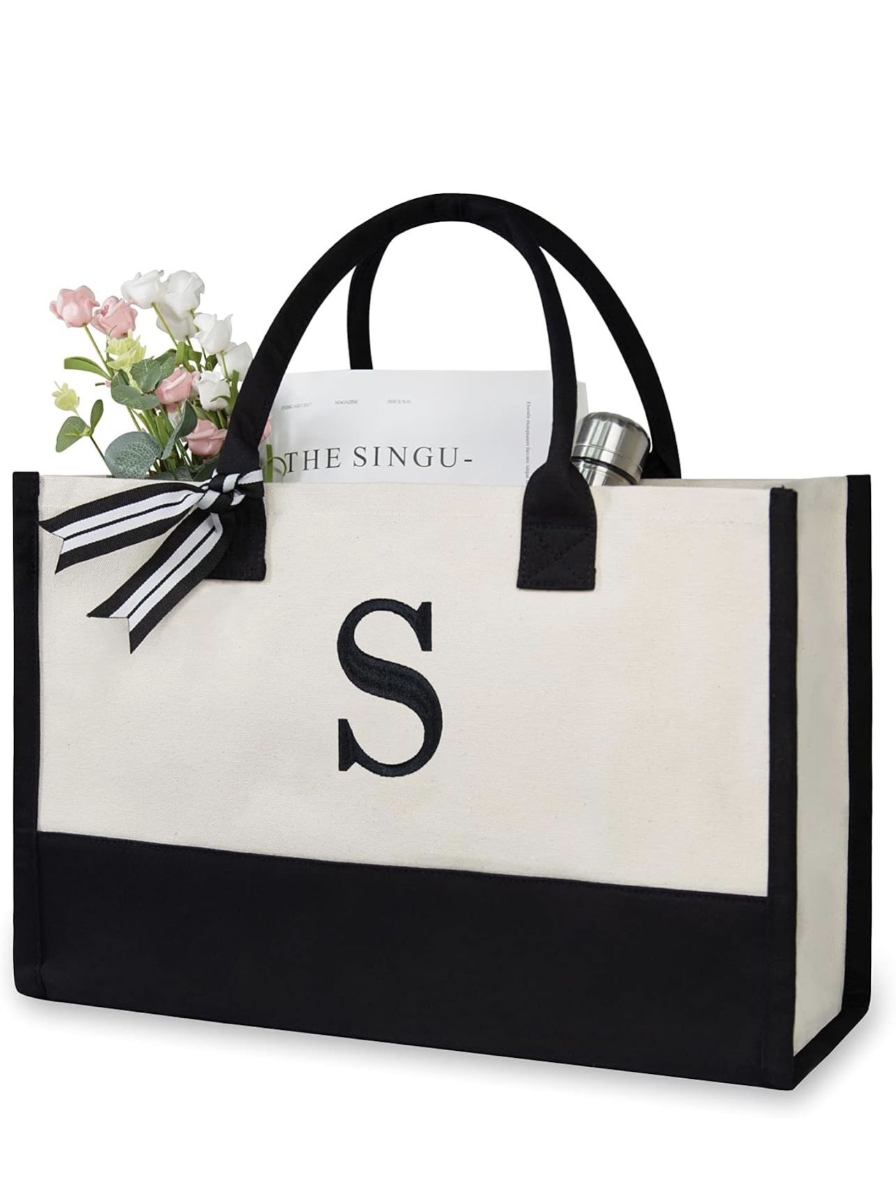 Brand new TOPDesign Personalized Initial Canvas Beach Bag, Monogrammed Gift Tote Bag for Women