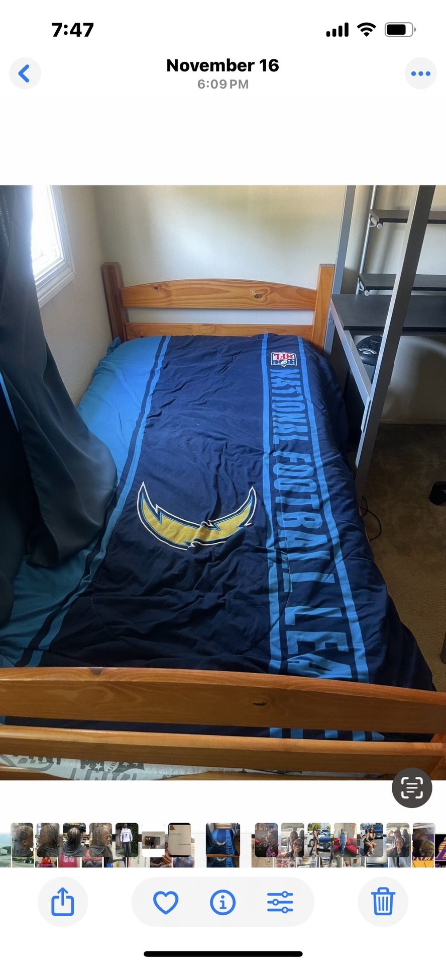 Slightly used twin size bed with mattress strong oak wood frame only $60
