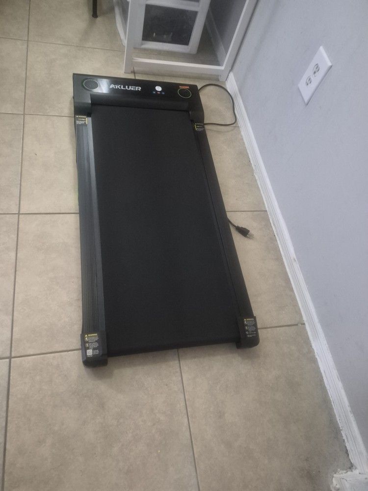 Cash or Zelle accepted. Like New used perfect condition. Purchased on Amazon originally. No refunds once paid for. Only used a few times. Lightly used AKLUER walking pad in great working condition. Perfect for home workouts or staying active while working from home. Slim, low-profile design easily fits under a desk, bed, or couch when not in use. Features: Quiet motor – ideal for apartments or office use Easy one-button controls with digital display Built-in speakers Compact, space-saving design Smooth, comfortable walking surface Plug-and-play setup (no assembly required) Condition: Very good, clean, and fully functional Pickup: Local pickup only Great option if you want to walk while working, watching TV, or just getting daily steps in without a full treadmill taking up space.