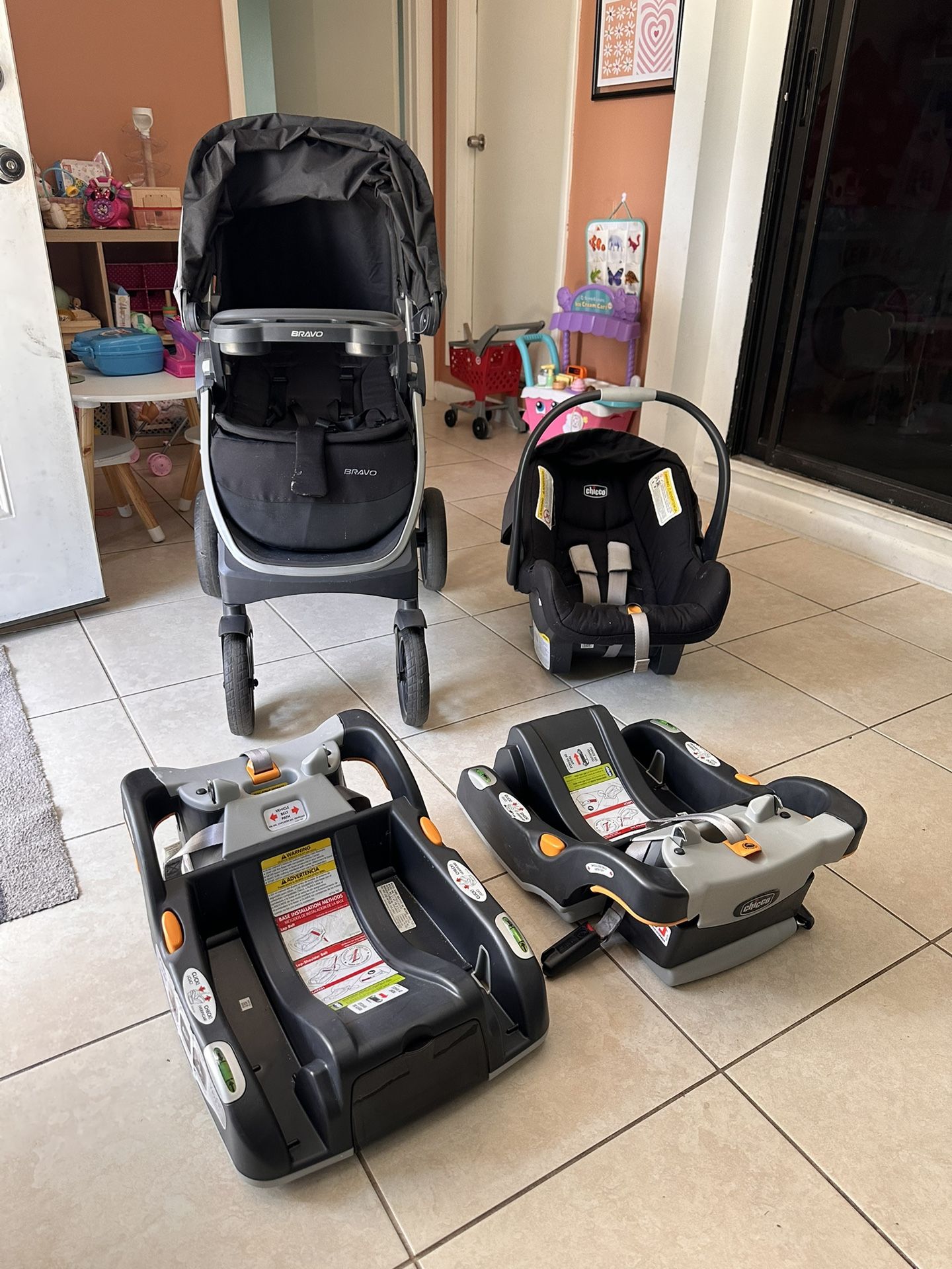 Chicco Bravo KeyFit30 Car Seat and Stroller Combo Includes: 1 stroller 1 infant car seat (expires July2027) no accidents 2 car seat bases