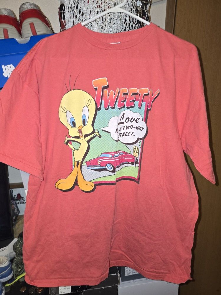 Vintage Tweety Bird Looney Tunes XLarge T-Shirt Y2K Coral Shirt Double Sided