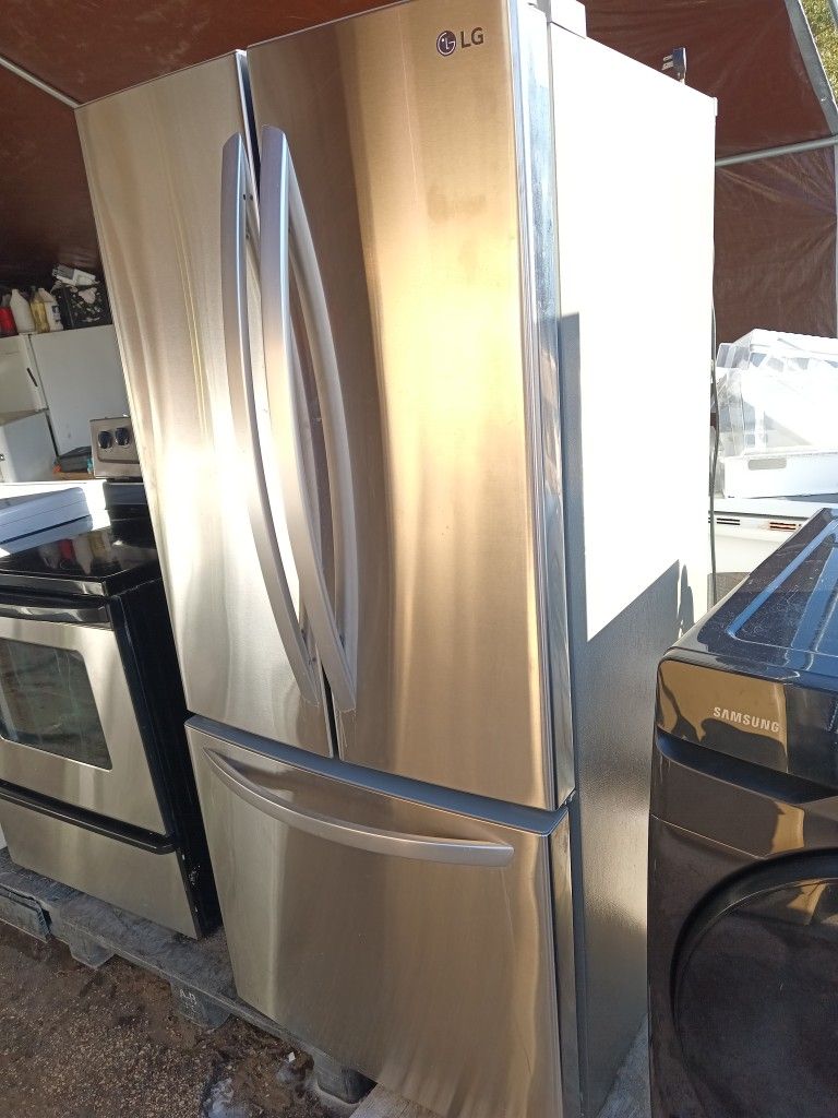 L/G refrigerator stainless steel everything works good 💯 Ice maker on the bottom 2️⃣ months warranty ------------------Delivery available for additional fee -----we are located in Seffner