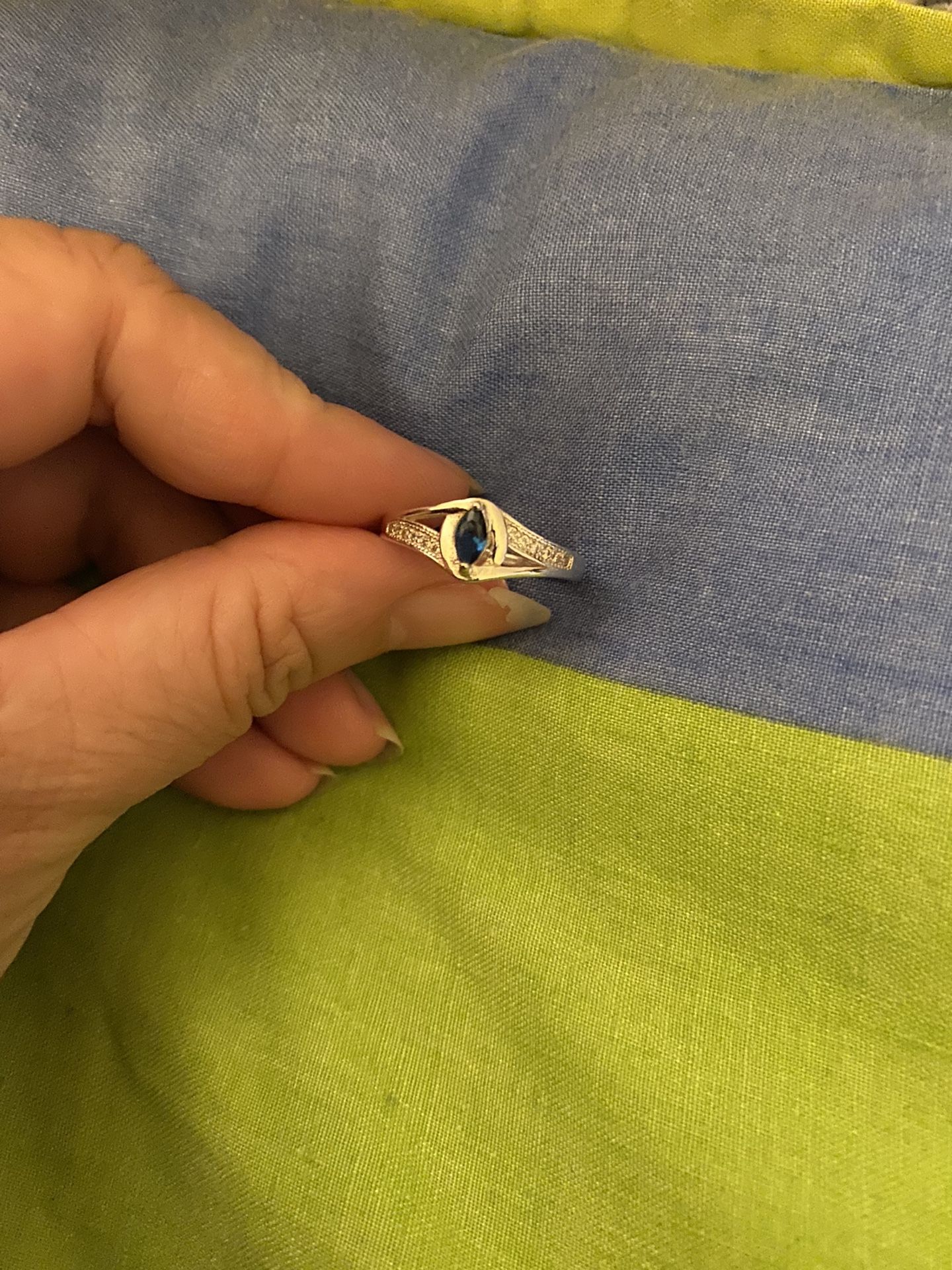 Real 925 Sterling Silver Blue Sapphire Wedding Ring Size 9