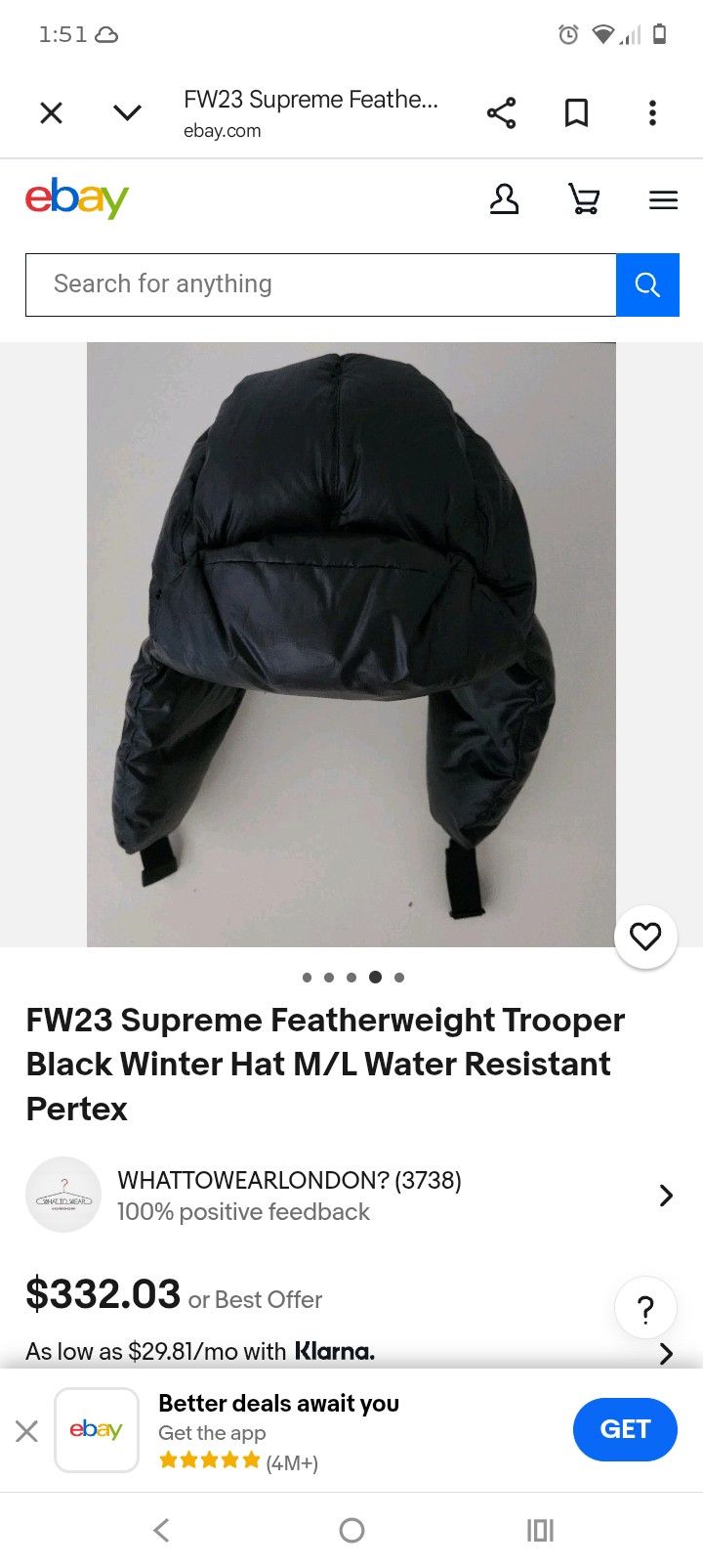Authentic supreme FW23 featherweight pertex trooper winter hat, online they go for $300-$350 make my a decent offer no low ballers don't waste either of our time
