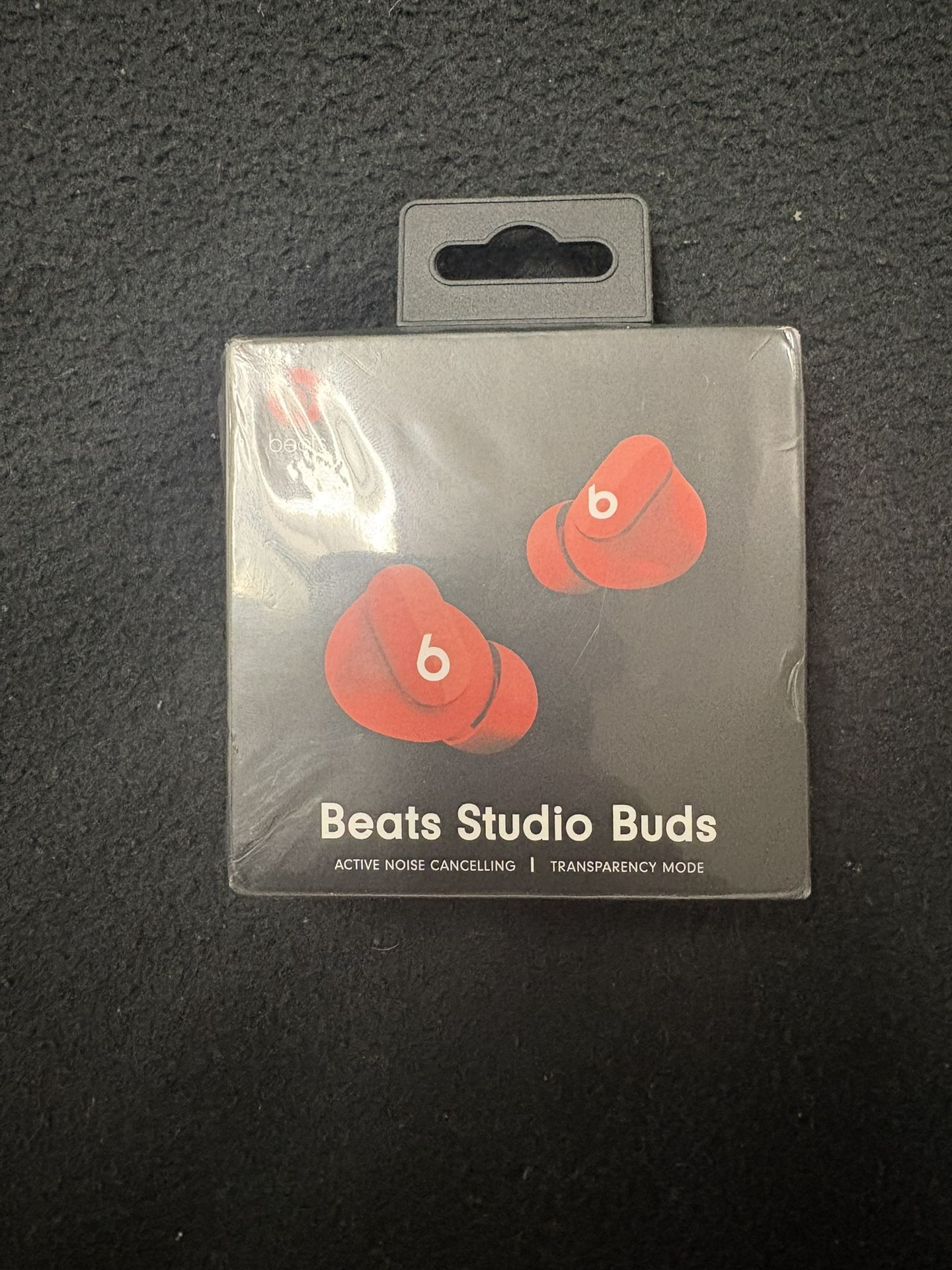 New Red Beats Studio Buds. In packaging. Wireless earbuds.