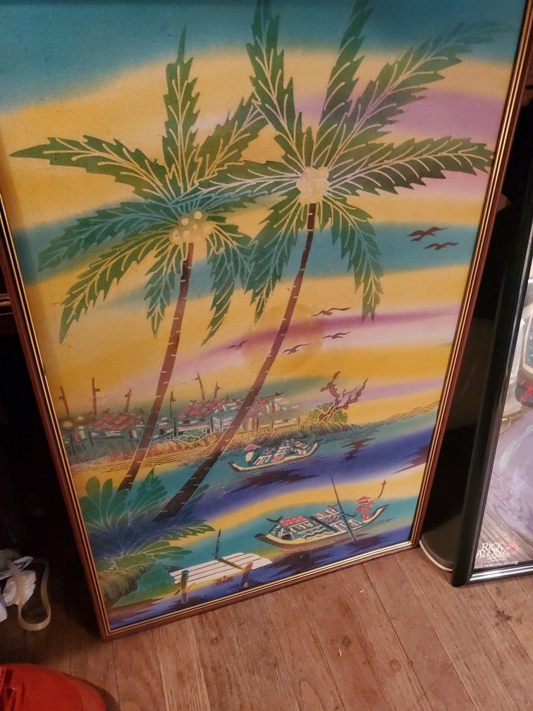 Beautiful colors no damage awsome Era .beach setting with fisherman and palm trees. Approximately 16"x 30
