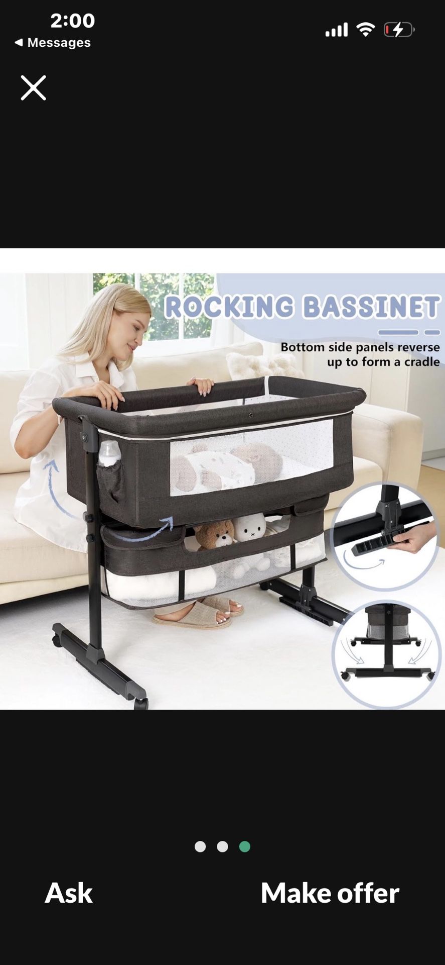 Baby Bassinet, 3 in 1 Bedside Bassinets for Baby, Bassinet Bedside Sleeper with Wheels, Adjustable Height with Rocking Mode, Breathable Mesh, Storage Basket, Easy Assemble & Folding (Dark Gray) See less Ask Make offer