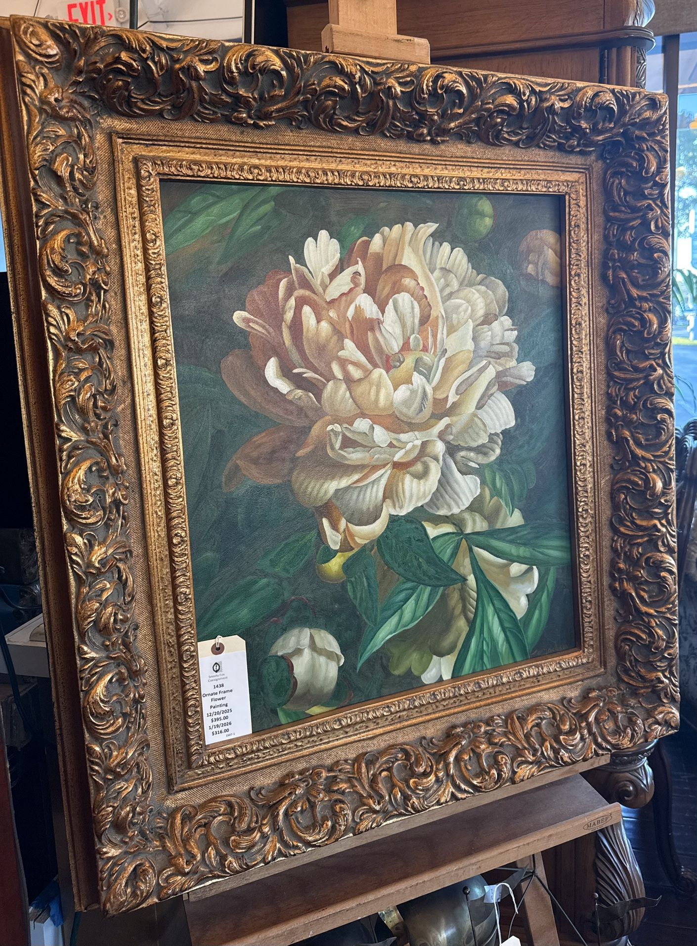 WE HAVE A LARGE INVENTORY IN HIGHEND FURNITURE, WOOD FURNITURE WITH ALL DIFFERENT COLLECTIONS. DINING ROOM SETS, BEDROOM SETS, LIVING ROOM SETS AND MANY OTHER BRANDS LIKE MAITLAND SMITH, VERSACE, BERNHARDT, HENREDON, BENNETTI AND ALSO ITEMS TO COMPLEMENT YOUR HOME DECOR, ACCESSORIES, PERFUM, JEWELRY, CHANDELIERS AND MORE. Available to see in person in Fort Lauderdale!!!! WAS BEFORE: $395 NOW: $316 Oil painting framed by peonies, handmade inspired by a common style. The painting represents a large white/cream peony flower with hints of orange or peach, surrounded by green leaves and other buds on a dark background, creating a dramatic contrast. The style is a floral still life of classic and detailed oil painting. The work is contained in an ornate Baroque or Rococo style frame with a golden finish, which enhances the luxury and drama of the piece. In excellent condition! We also have AICO By Michael Amini Collections… AICO Furniture designed by Michael Amini has been a TOP name brand since 1988 AICO, which stands for Amini Innovation Corp, features original furniture designs and is known for high quality and intricately designed home furnishing case goods and upholstery. They offer many collections that suit various tastes and styles. Ask for our FINANCE LAYAWAY program!!! 🦊 Additional we have Available FINANCING with Klarna, PayPal, ACIMA And more!!! Available at: Snooty Fox Consignments 840 E Oakland Park Blvd Oakland Park, FL 33334 754.206.20.77