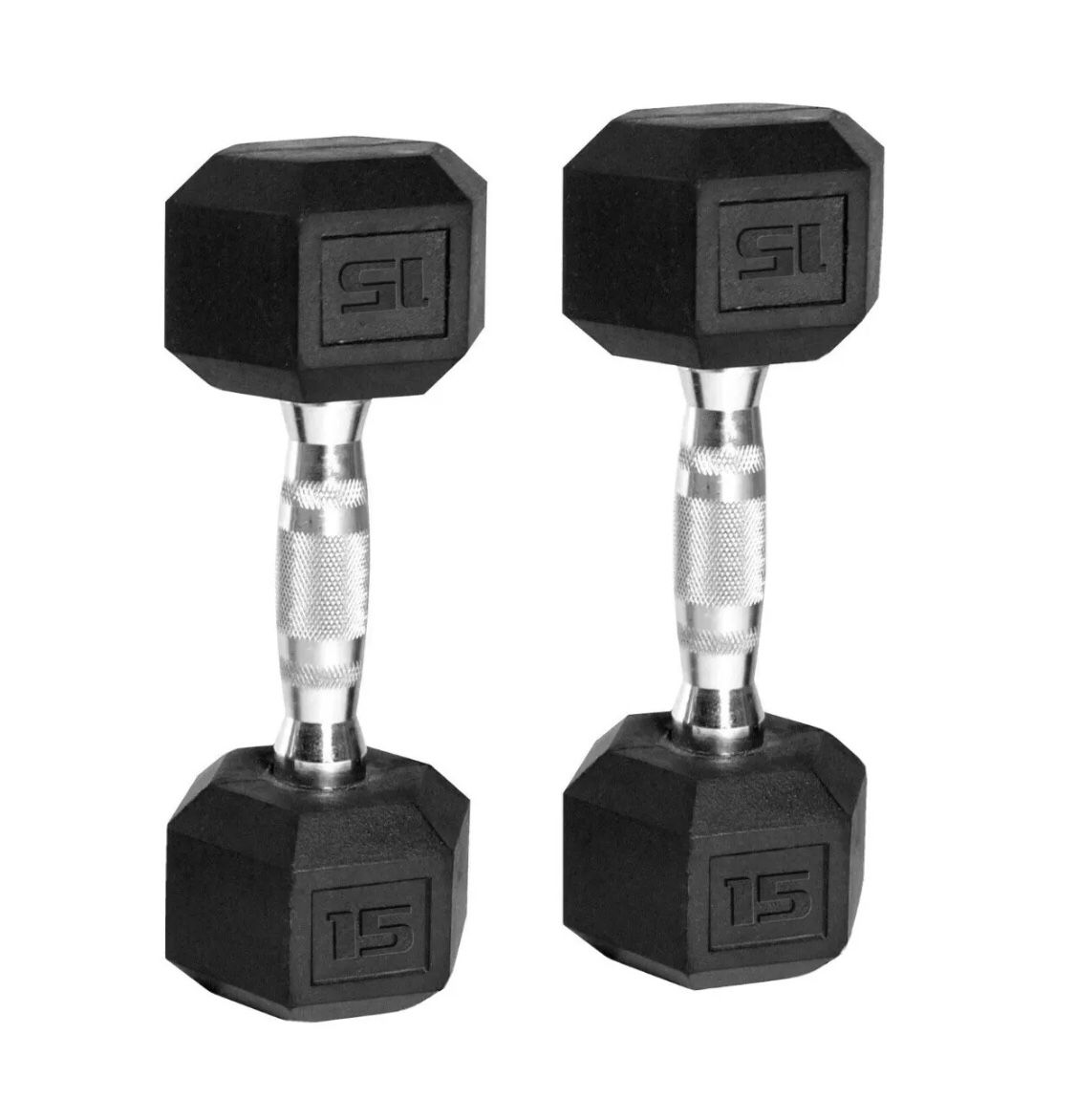 Brand new with tags 15 pound hex dumbbells Set of two