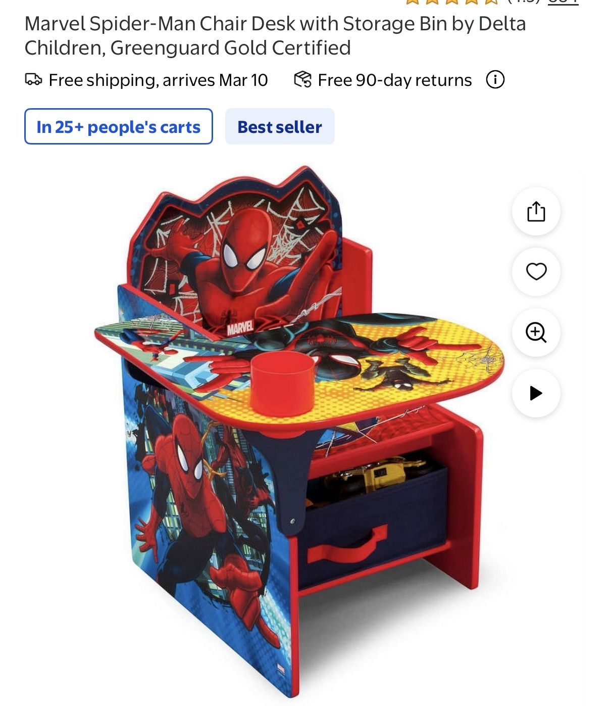 Marvel Spider-Man Chair Desk with Storage Bin by Delta Children, Greenguard Gold Certified