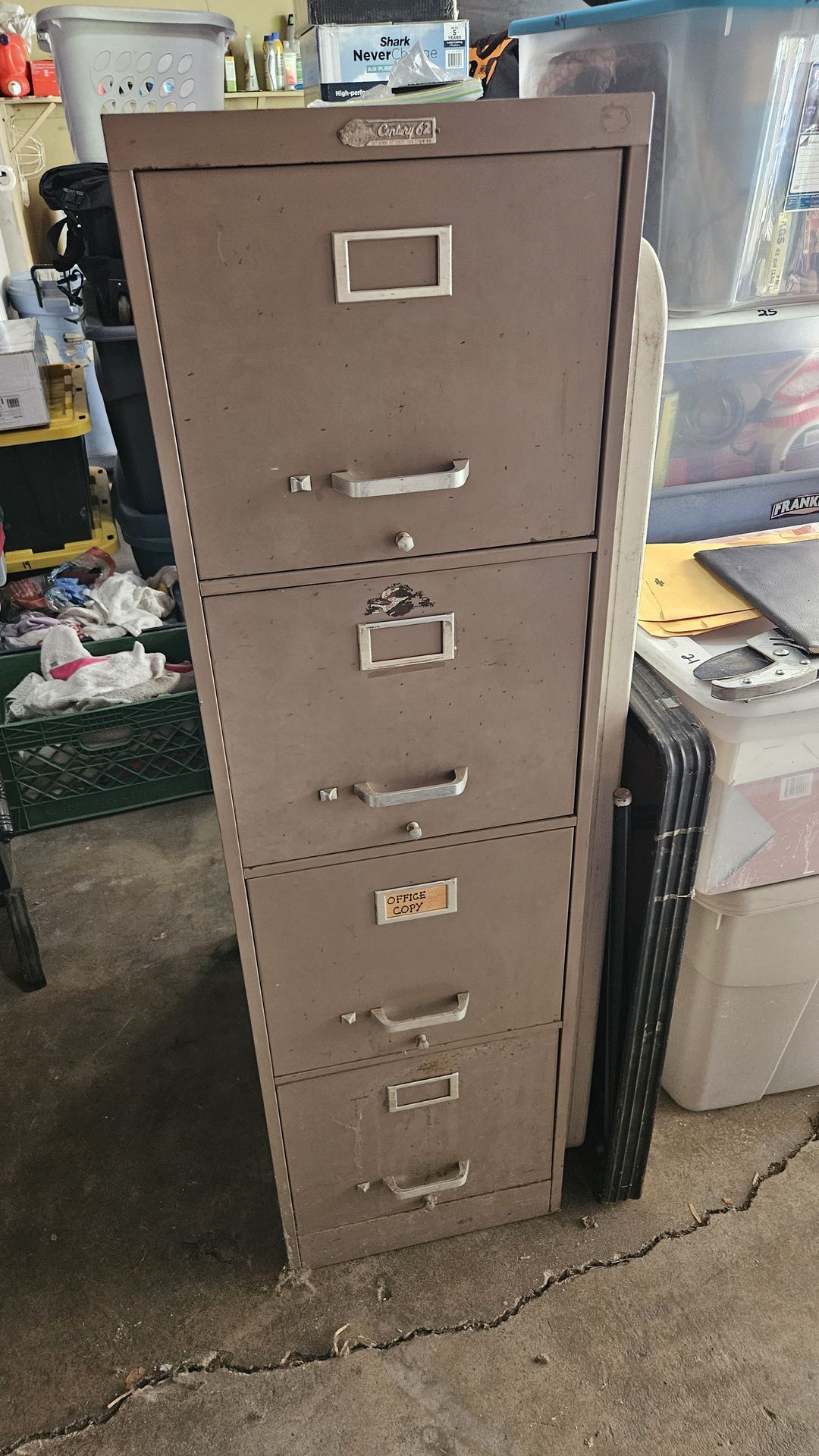 Metal file cabinet, 4 drawers 57 in H x 15 in W x 26 in D Located in Covina Cash only No delivery or shipping