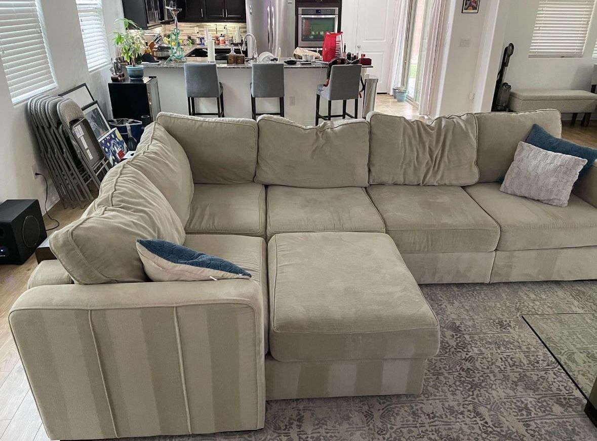 For sale is a 6 seat 10 side Lovesac. $7000 new. Couch is in great condition. Has little highlighter blemish I posted in the pictures. Can customize it any way - check out lovesac website. Easy to clean & maintain! Cash only, no trades.