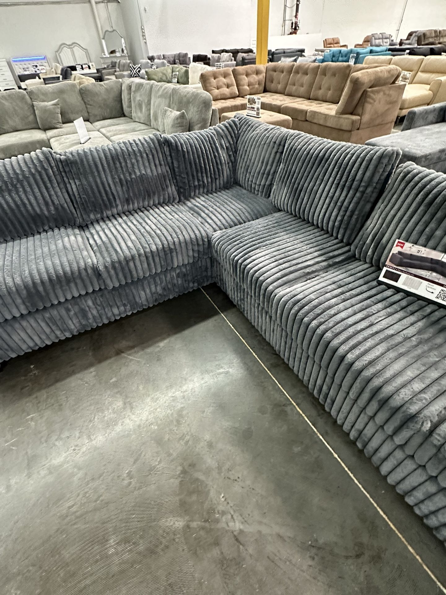 Corduroy Dark Grey Sectional. New Sectional 4-pc Nuevo Seccional De 4 Piezas Color Gris. Oscuro 4-Piece Sectional Set New sectional in a box