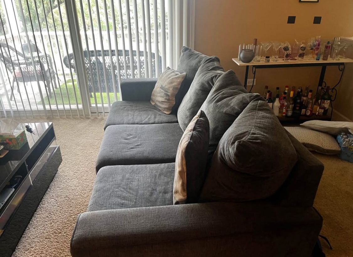 π Gray Ashley Furniture Couch (with 2 pillows) Photo 1 (full couch): β¨ Comfy gray Ashley Furniture couch β includes 2 matching pillows! Photo 2 (close-up of fabric & pillows): Soft gray fabric β pillows included for extra comfort π« Photo 3 (angled shot): Perfect for any living room or apartment β cozy and modern Photo 4 (side view): $300 OBO β pickup must be by Nov 3! *Address will be given after purchase is made*