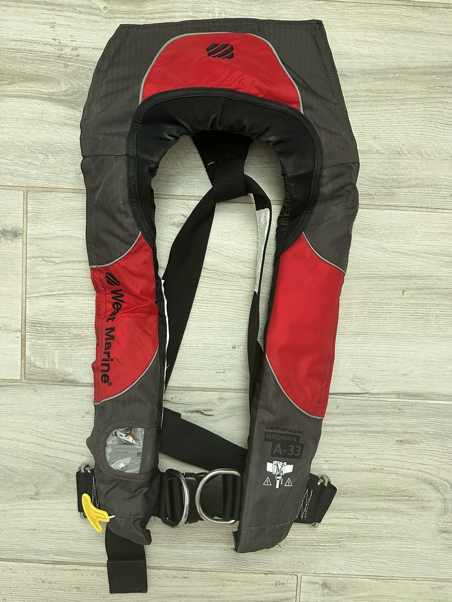 West Marine automatic inflatable life jacket (Offshore A-33) – high-quality safety gear, great for boating, sailing, and offshore use. Lightweight and comfortable to wear, inflates automatically when submerged for added safety and peace of mind. Condition: ✔️ Excellent / like new ✔️ Never used ✔️ Clean and well stored Details: • Adult universal size (fits most) • Automatic inflation + manual pull cord • Offshore-rated (Type II inflatable PFD) • Adjustable straps for secure fit • Compact, low-profile design Perfect for: • Boating • Sailing • Fishing • Offshore trips Much more comfortable than traditional bulky life jackets