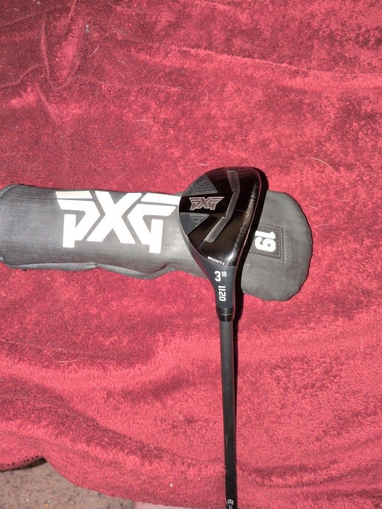 Pxg 3 hybrid 19 degree with stiff flex shaft and jumbo jmx zen lite grip.