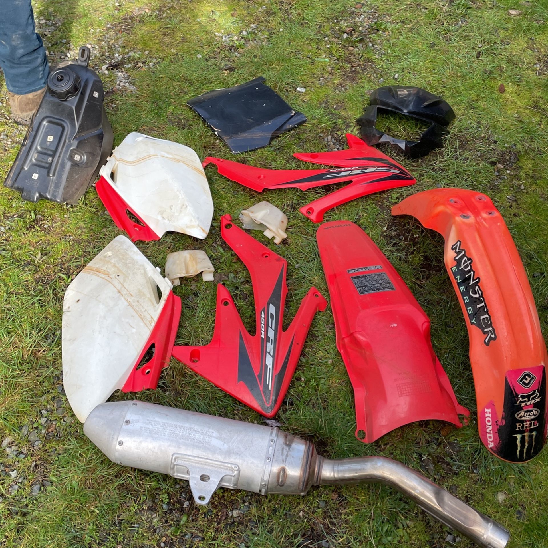I have this plastic and exhaust for Honda 450r I believe it’s for 2007 the tire it’s in good shape im asking 100 for all