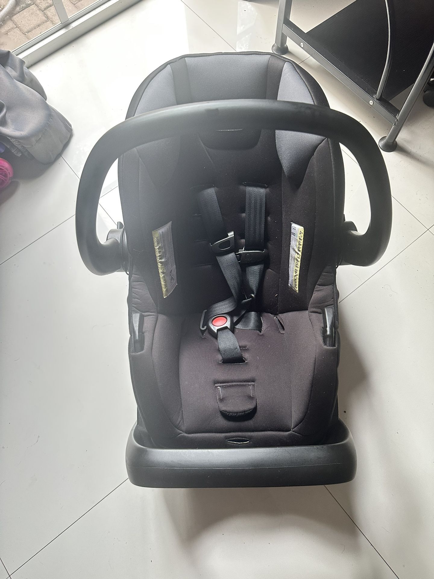 Slightly used Evenflo infant car seat and stroller combo with car seat base. All black.