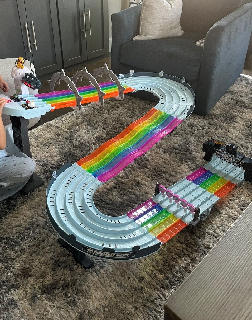 Hot Wheels Nintendo Mario Kart Rainbow Road Raceway Track Set 30 Piece with 2 1:64 Scale Vehicles Brand new cost $150. Two fun race tracks for any Mario fan.
