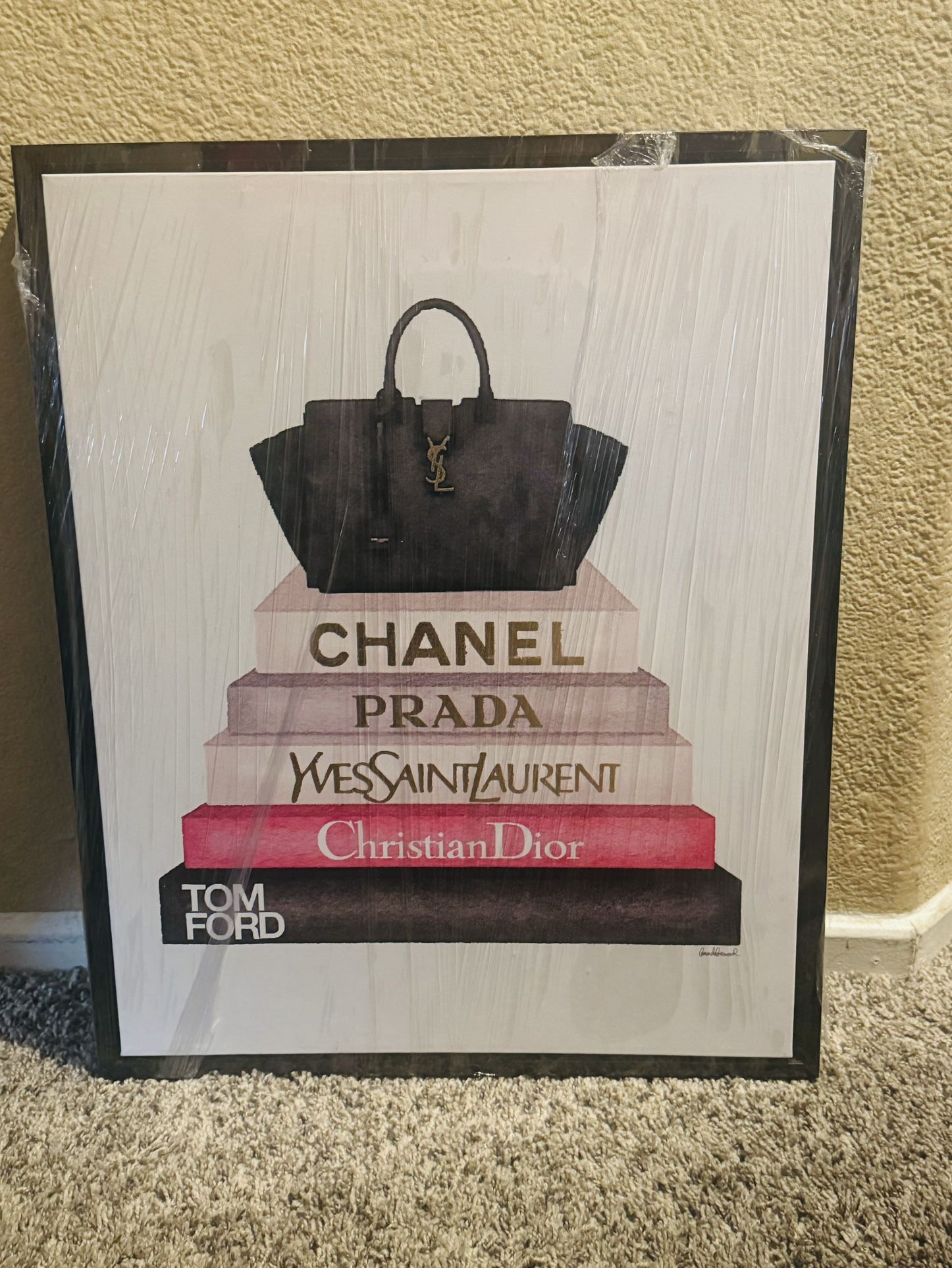 2 1/2 feet by 2 feet Black Acrylic frame Plastic wrapped