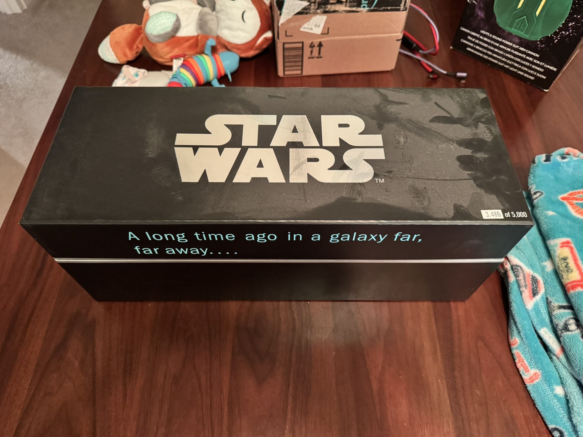 Selling my Star Wars limited edition collector’s set – only 5,000 made! This one is #3,486 and comes with: • Boba Fett gauntlet replica • Burned Darth Vader mask replica • Rebel/Yavin medal • Certificate of Authenticity in original collector’s box Opened just to take photos, otherwise perfect. $200 OBO – serious Star Wars collectors know how rare this is!