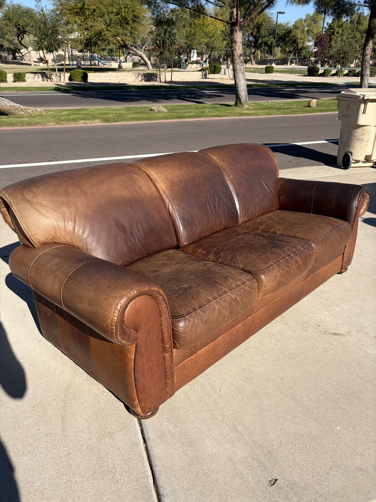 Good condition! This leather couch measures 90” x 44" long. Clean & smoke free home. Minor wear on cushions. Has some dog hair under cushions. Very comfortable. Looking for a great home! If needed, I have a truck and can deliver for a fair fee as well! Xstreets 67th and Union Hills