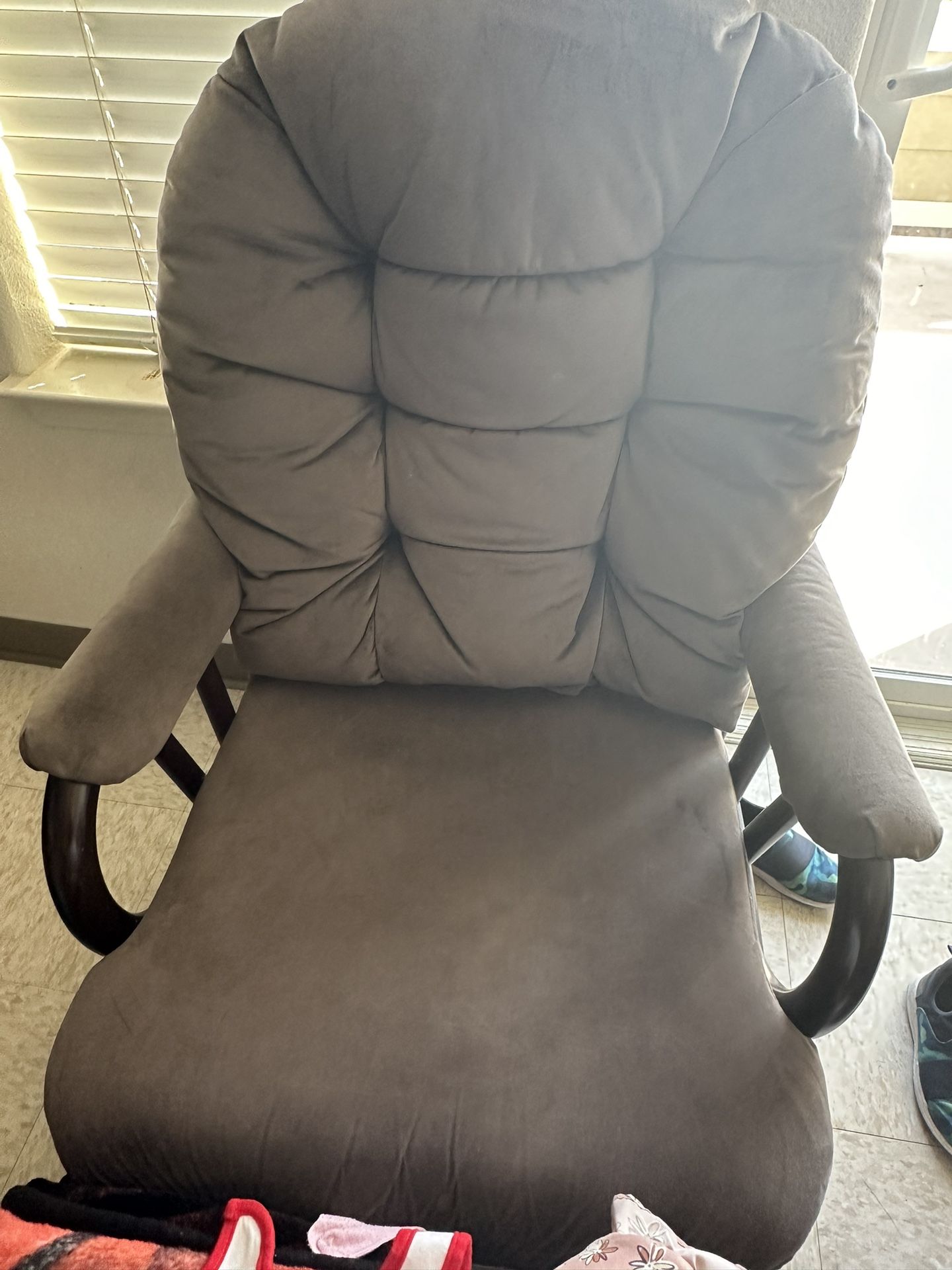 Grey, super soft and comfy rocking chair. In great condition