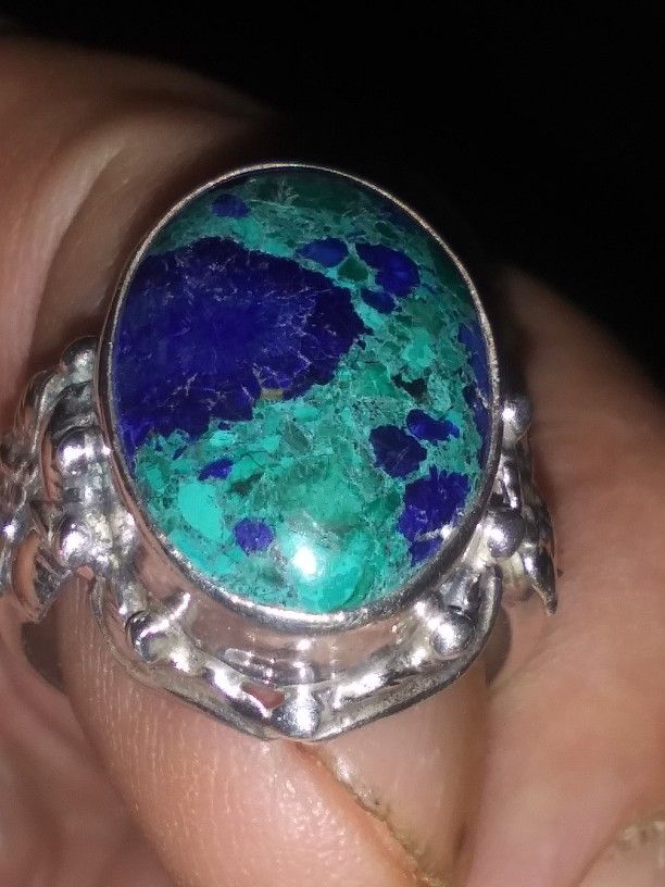 Rare Theodor Fahrner Sterling Azurite Malachite Ring .