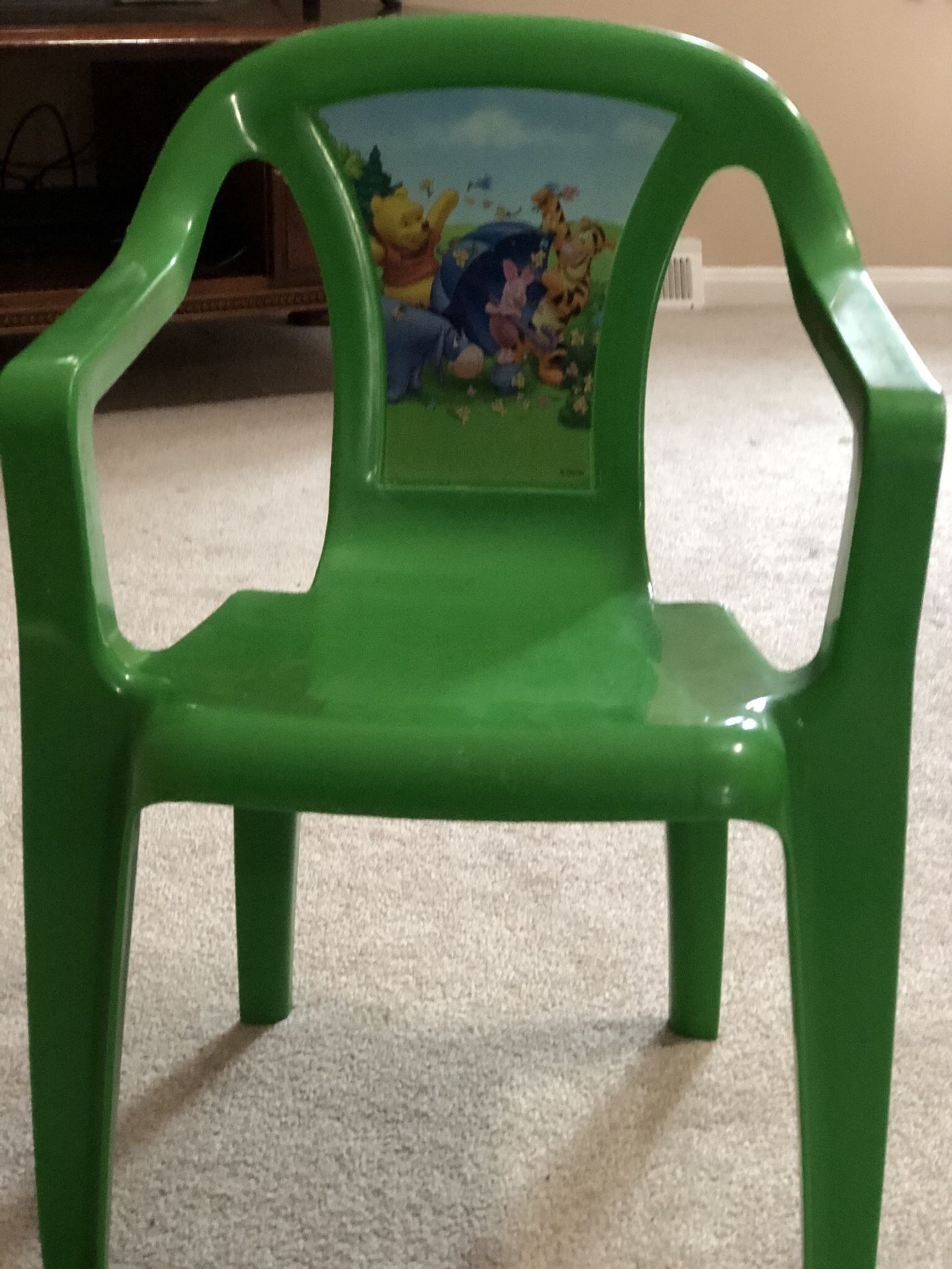 A fun addition to any room! Decorated with colorful pictures of Winnie the Pooh Eeyore Piglet and Tigger this chair is a fun addition to any toddler's room.