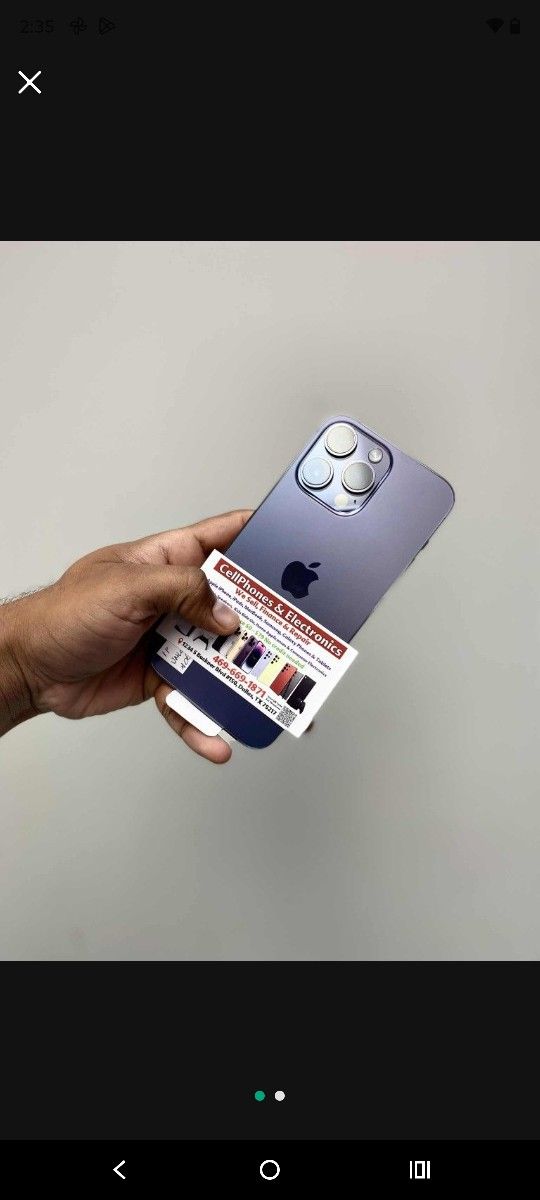 Pre Owned Apply online or in store (ask for online link) Excellent Working Condition Free Temp Glass or Clear Case on All iPhones Lifetime Blacklisted and IMEI Warranty on iPhones, Samsung, IPad's and Tablet's. No iCloud or Google Locked We have Limited Stock of PlayStation PS5, Xbox Series X & Series S, Nintendo Switch Mario Kart/Fortnite/Animal Crossing Bundles and Oculus Quset 2. All Accessories sold separately at additional cost. ***We Finance $0 to $50 Down Payment - No Credit Needed*** BAD OR NO CREDIT ALL ACCEPTED Easy-payments Decisions in minutes Take item home right away! Flexible payment options NO CREDIT NEEDED Three different options available Option 1: $0 down %0 interest for 6-12 months and low monthly payments Option 2: $0-$50 dow with %0 interest for 100 days Option 3: Low down payment with flexible payment options 90 days to 12 months payment option. Only $0-$50 is initial or down payment to take device home with you. Full price is based on which finance company approves you and depending on how long it will take you to pay back. ⚠️Requirements for in-store application⚠️ ✅ ID / Passport/ Mexican ID or Passport ✅ SSN or ITIN ✅ Bank account info ✅ Debit or credit card ⬇️⬇️⬇️⬇️⬇️⬇️⬇️⬇️⬇️ CELLPHONES & ELECTRONICS 1234 S Buckner Blvd, Suite 150, Dallas TX 75217 (We are behind PLS Check Cashing Building) 🕐 Mon-Sat 10:00am - 8:00pm 🕐 Sunday (By Appointment)
